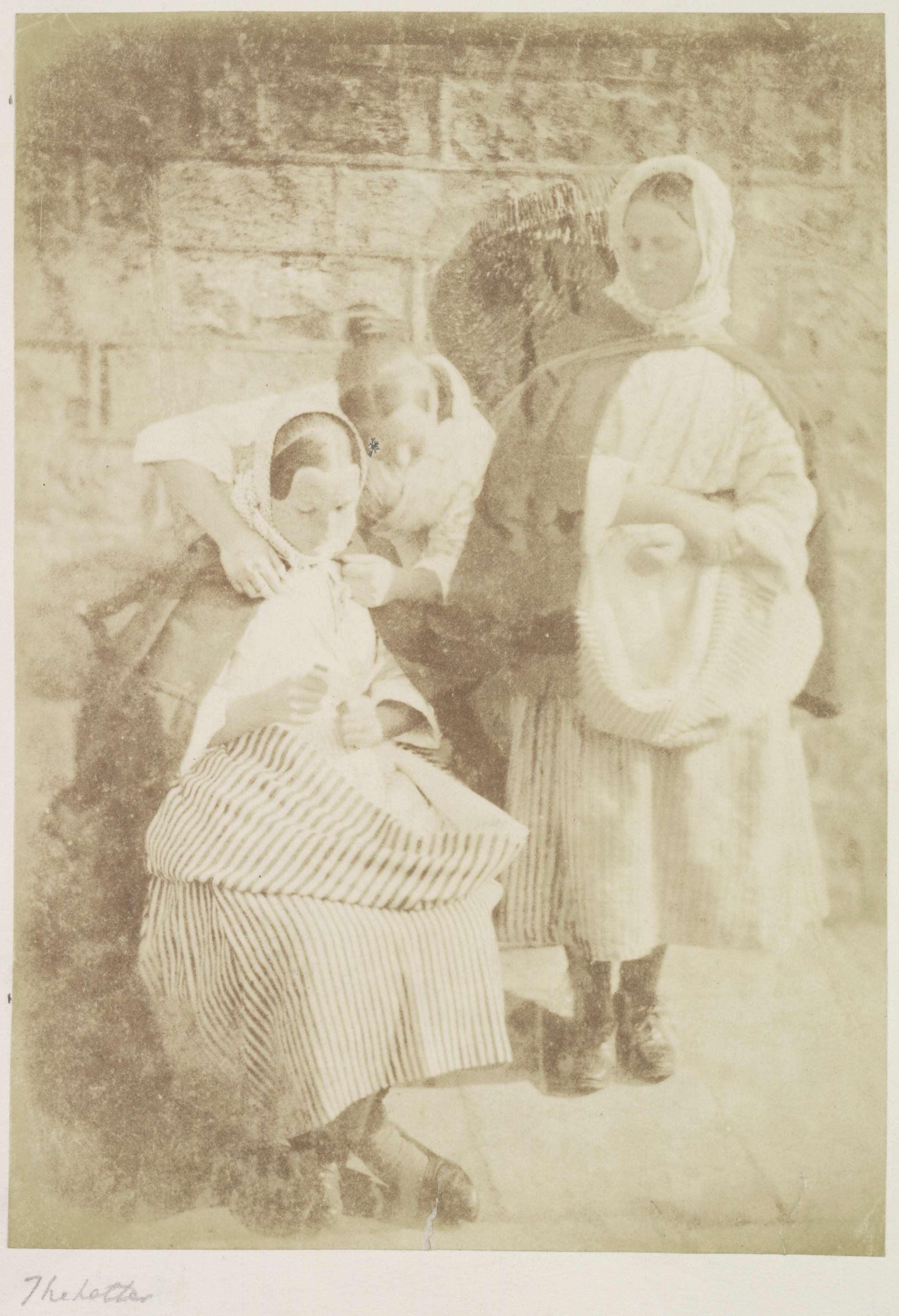 Drie vrouwen lezen een brief; v.l.n.r. Marion Finlay...