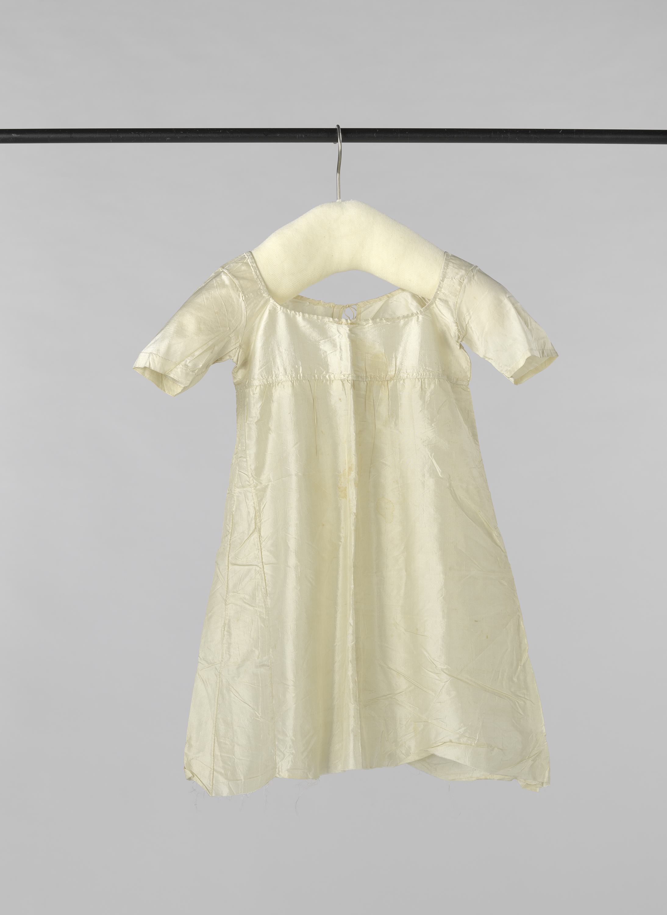Doopkleed van wit doorschijnend textiel met naaldkant