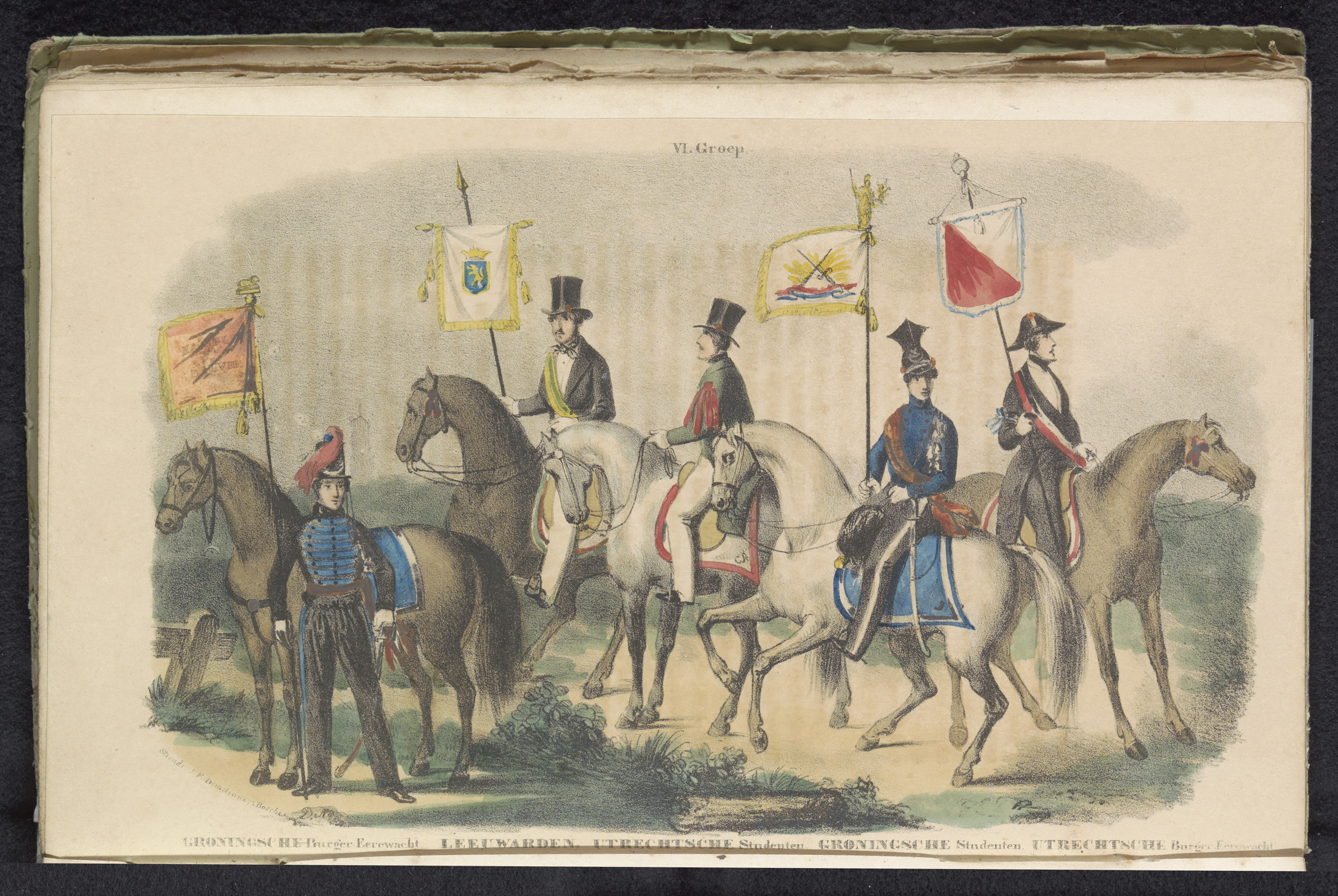 Kostumen en vaandels van de erewachten van Drenthe, ...