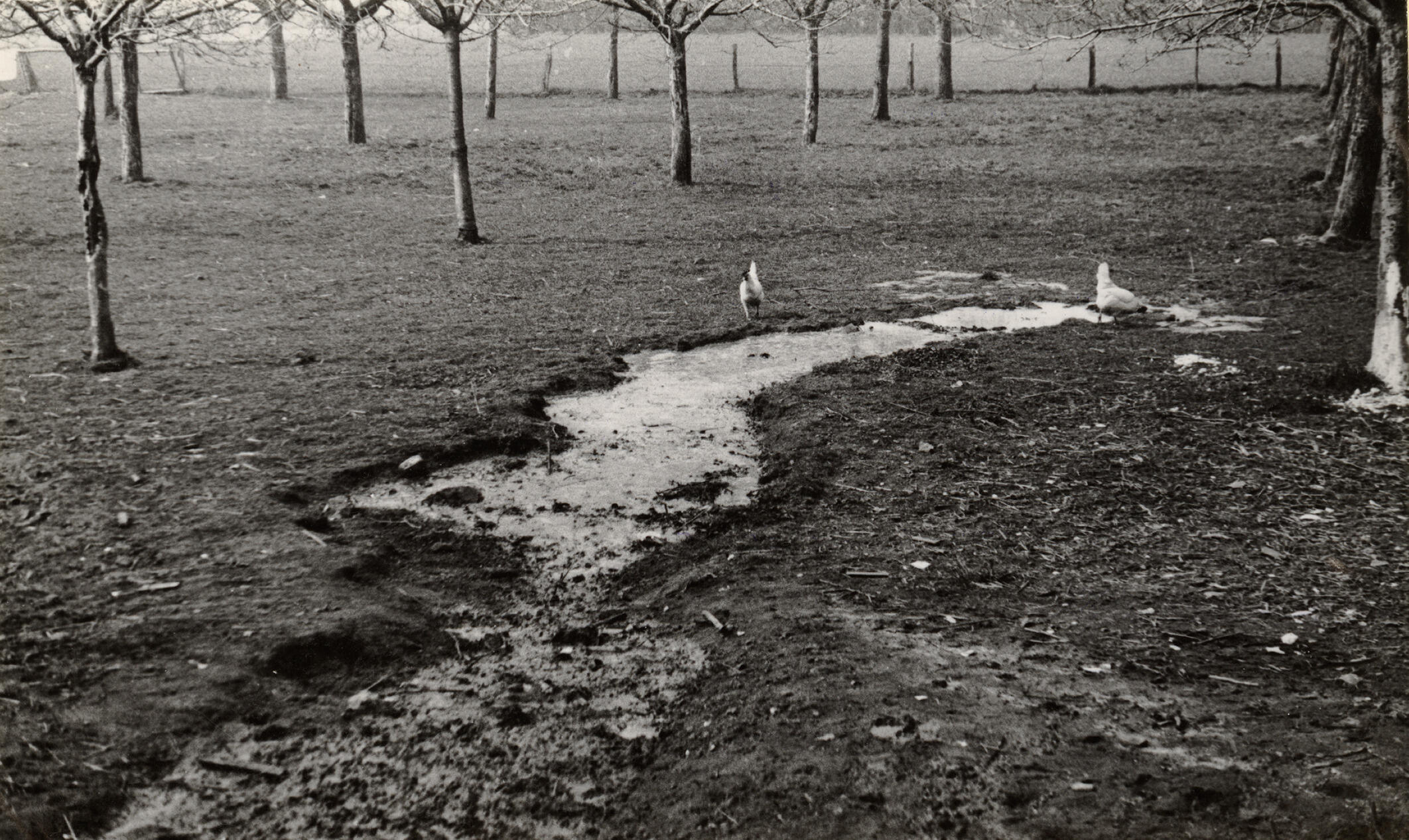Afvoergreppel in een boomgaard, Beers, 1936 (zwart-w...