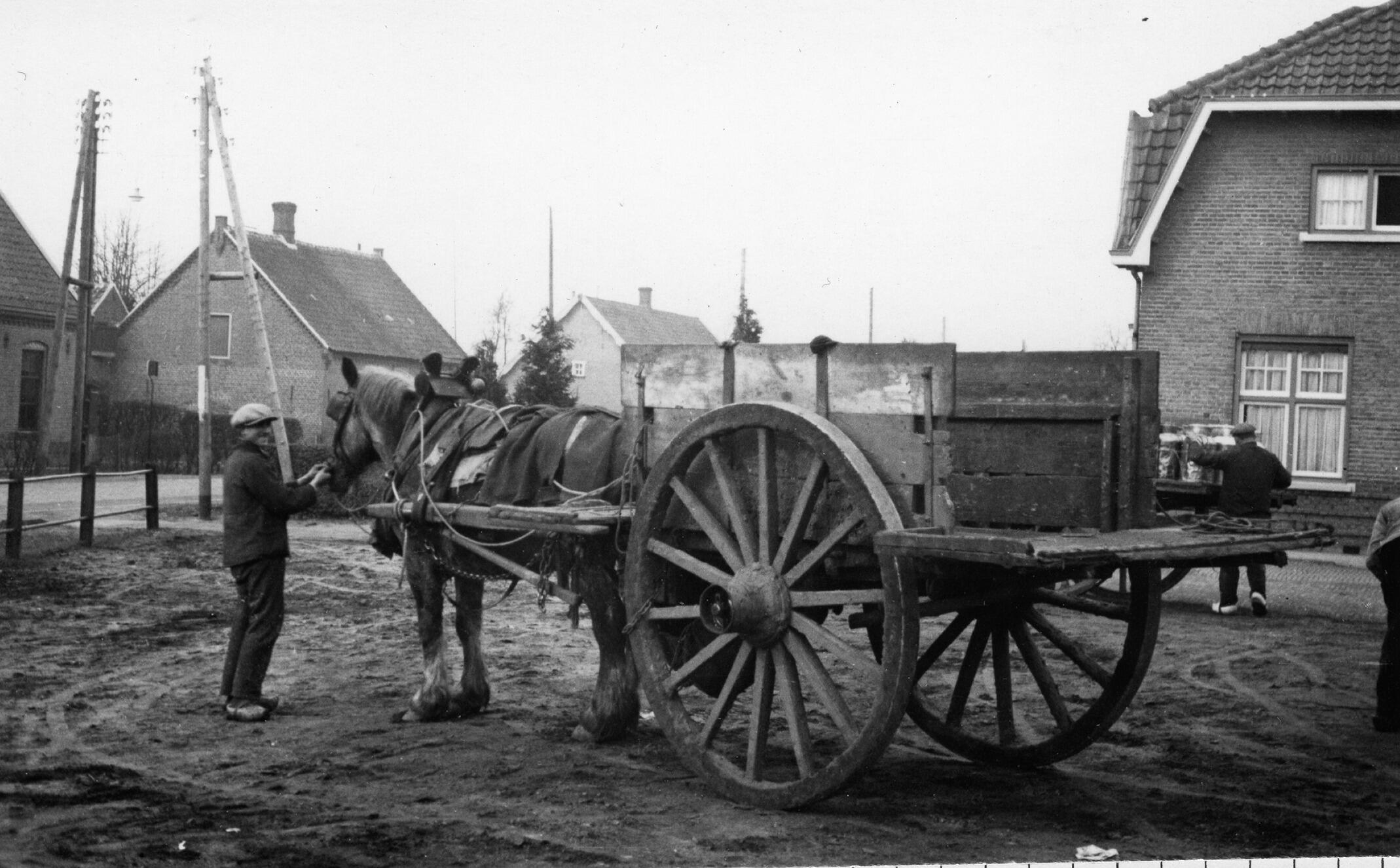 Paard en wagen met melkbussen, Veghel, 1936 (zwart-w...