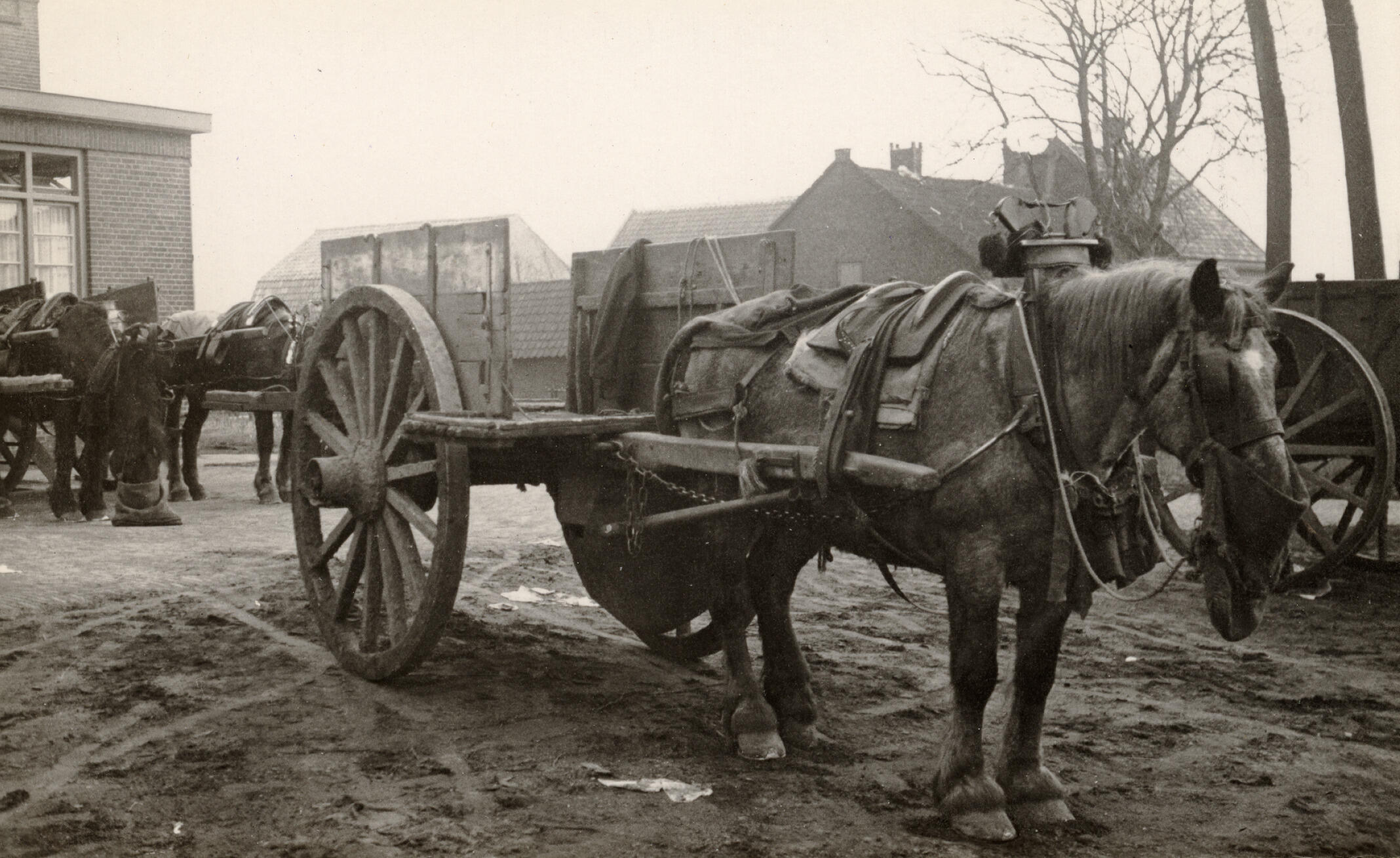 Paard en wagen bij een melkfabriek, Veghel, 1936 (zw...