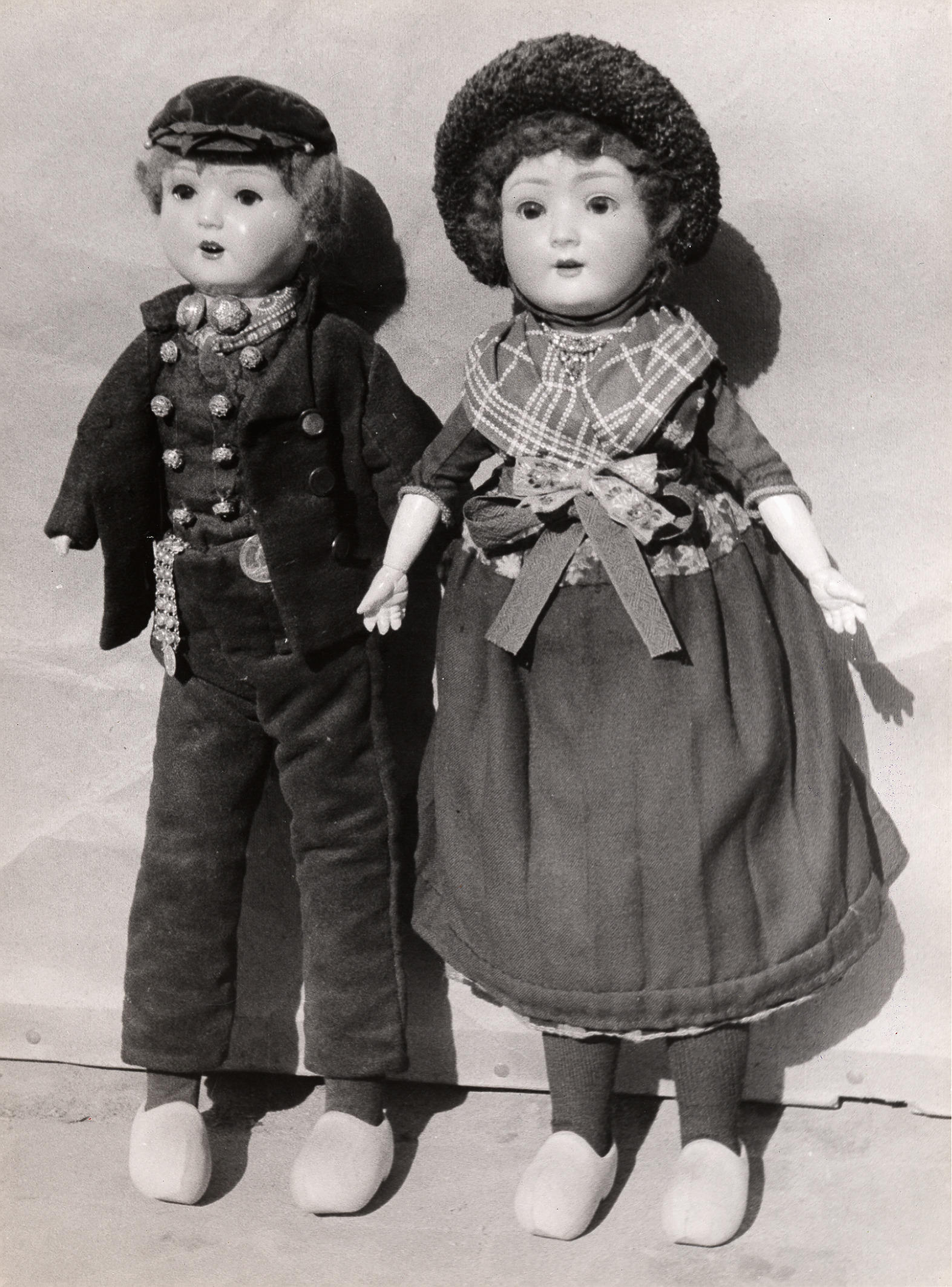 Streekdrachtpoppen, Rouveen, 1944 (zwart-wit foto)