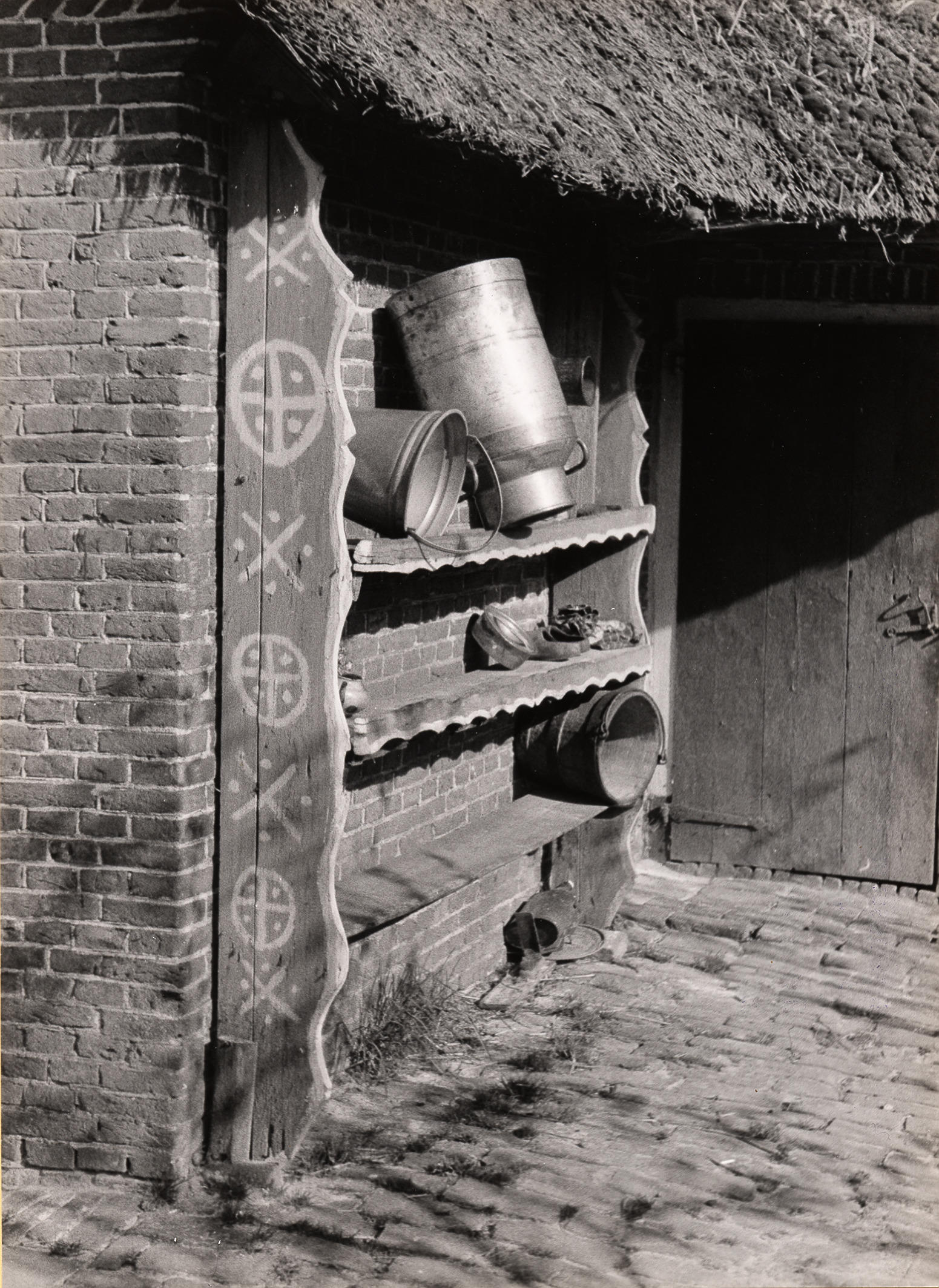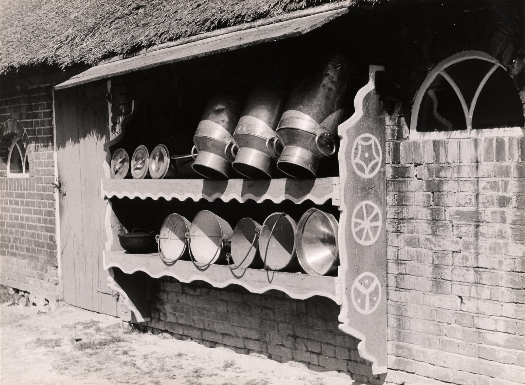 Melkbussenrek, Staphorst, 1944 (zwart-wit foto)