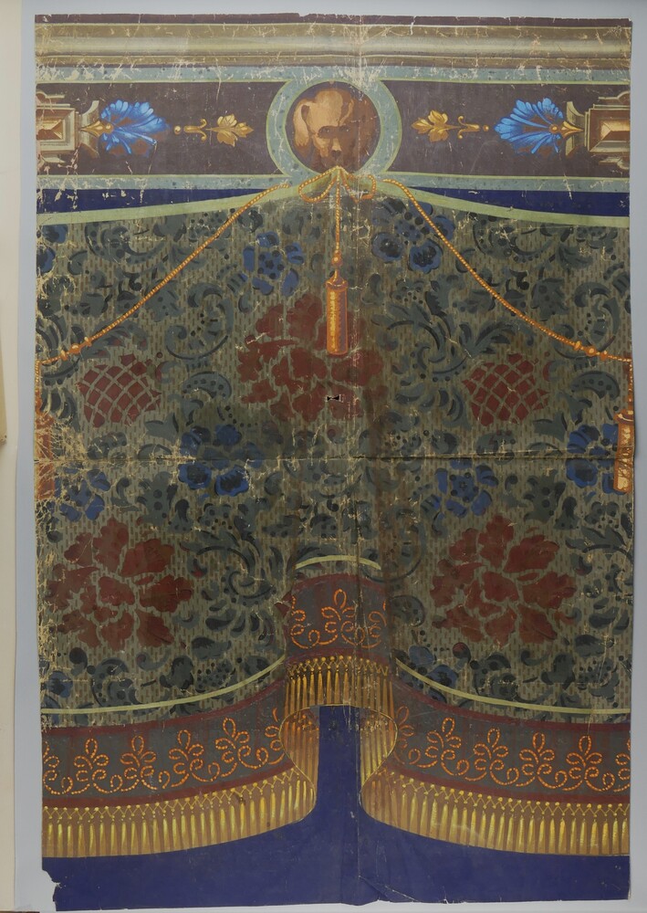 Behangpapier, zeven-kleurig met de hand beschilderd ...