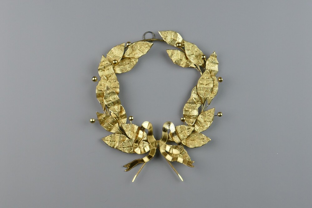 krans van goudkleurig metaal, prijs uitgereikt aan z...