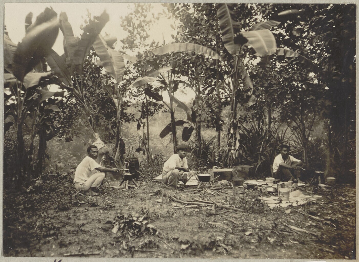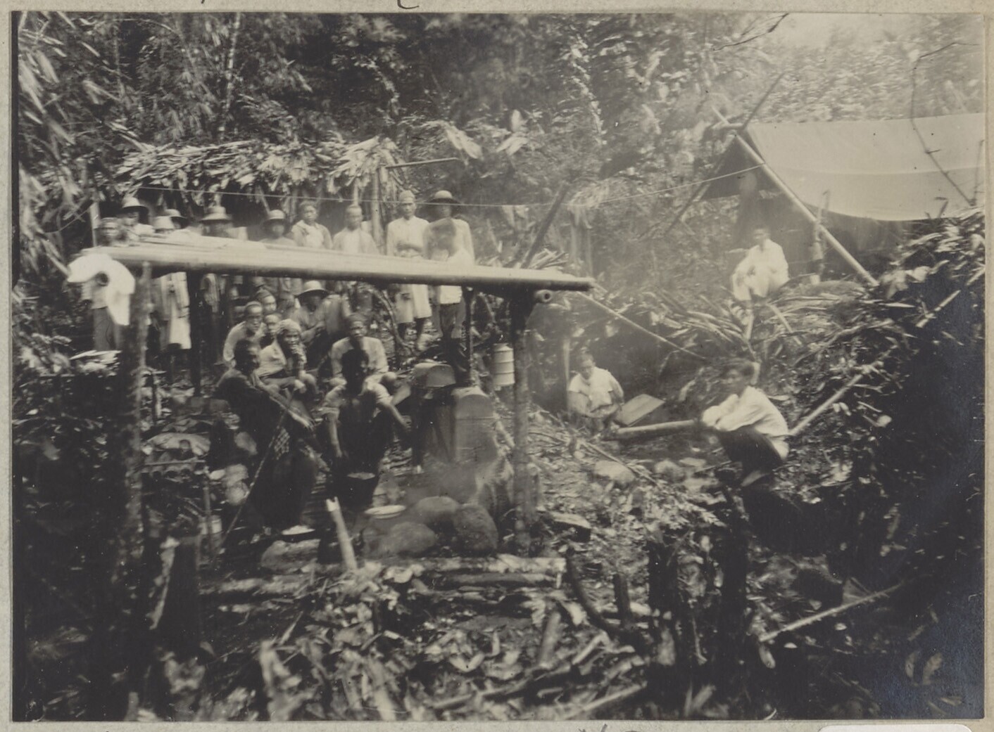 Koken in een bivak in de omgeving van Bandar