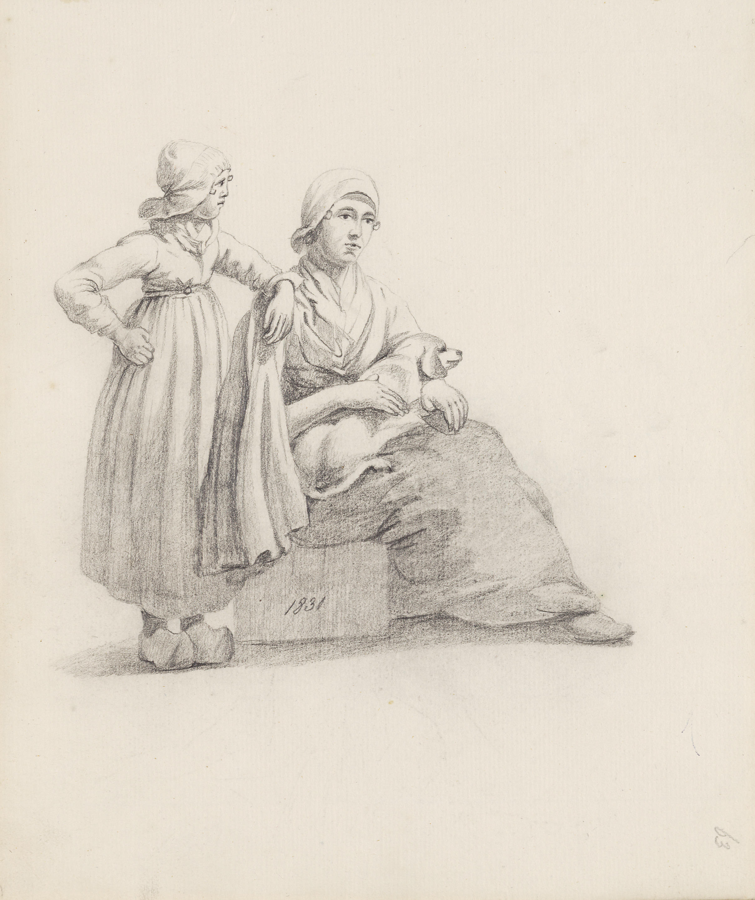 Tekening van vrouw en jongen uit Scheveningen, 1834