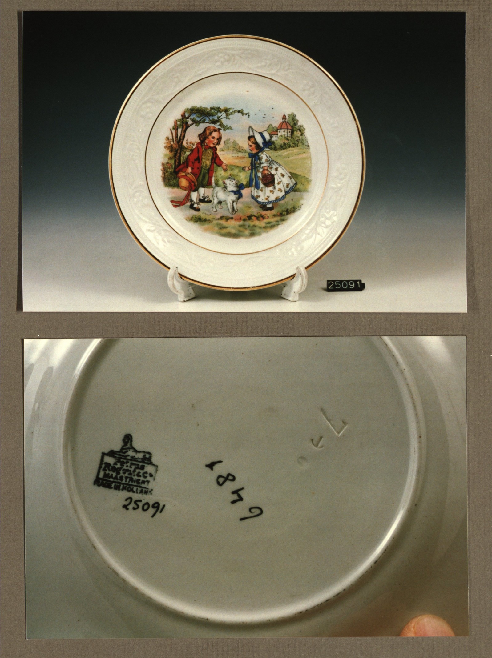 Plat bord, model Sterrand met decor Drinkers nr.2 Le...