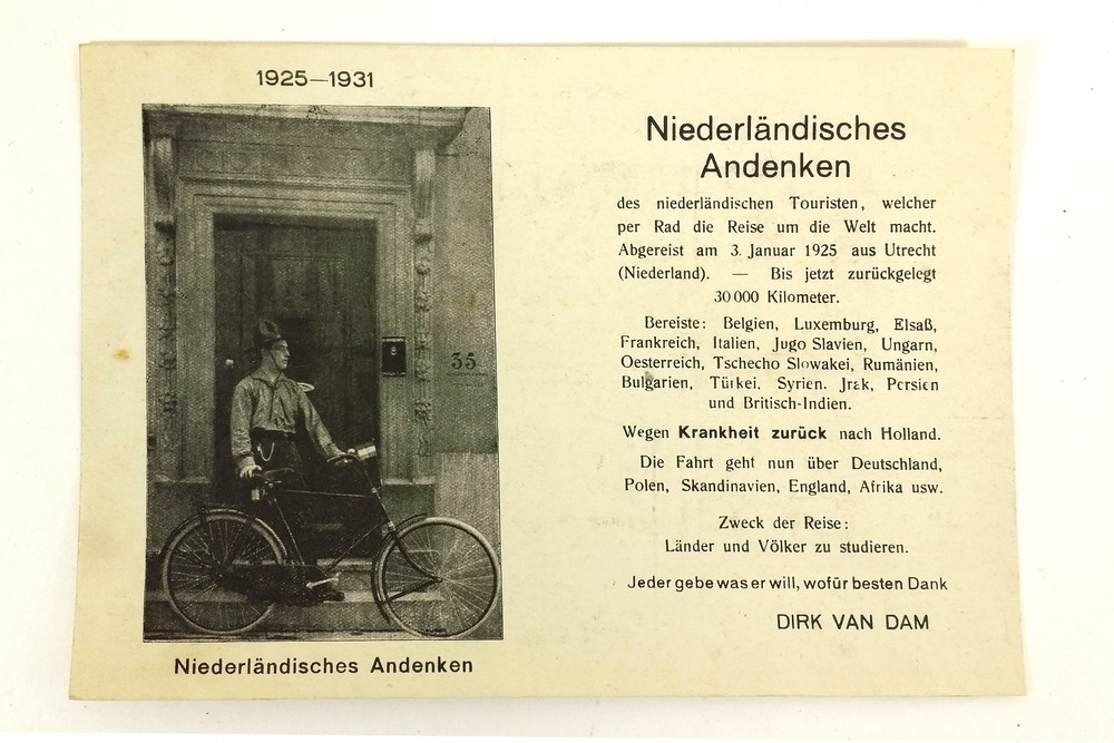 Gedenkkaartje Wereldfietsreiziger en journalist Dirk...