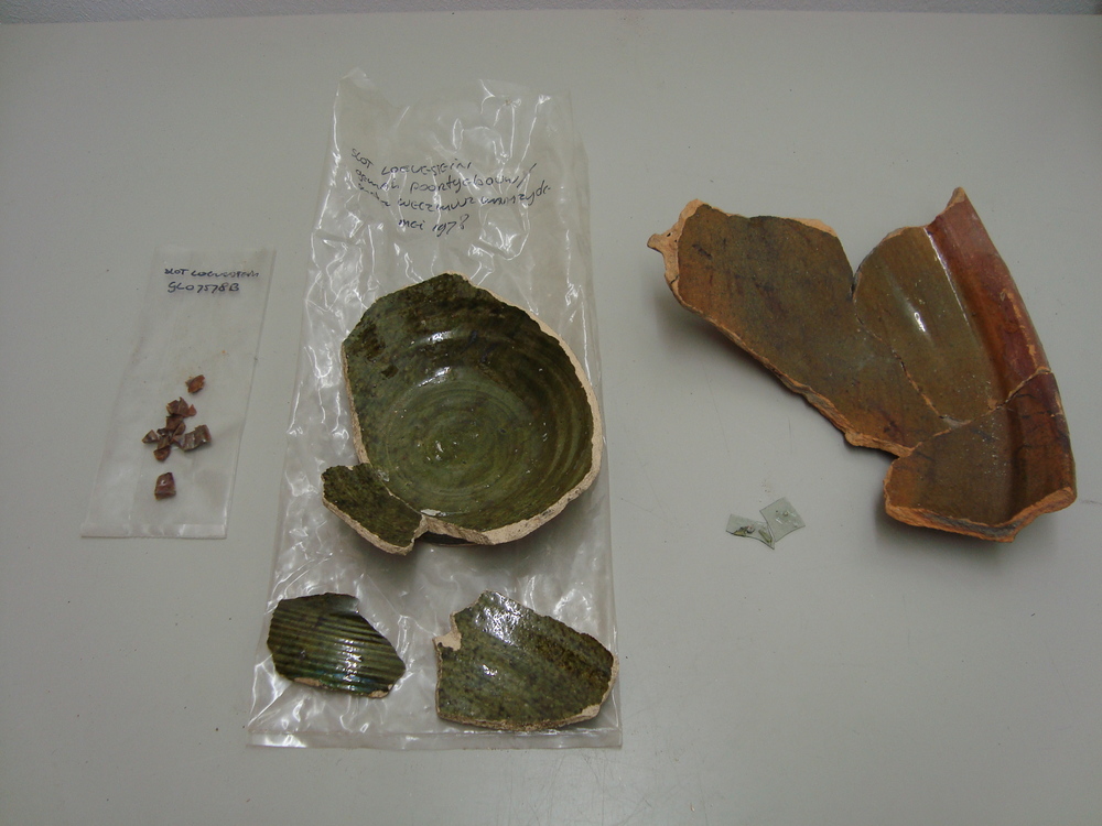 Fragmenten, aardewerk/ijzer/glas,
