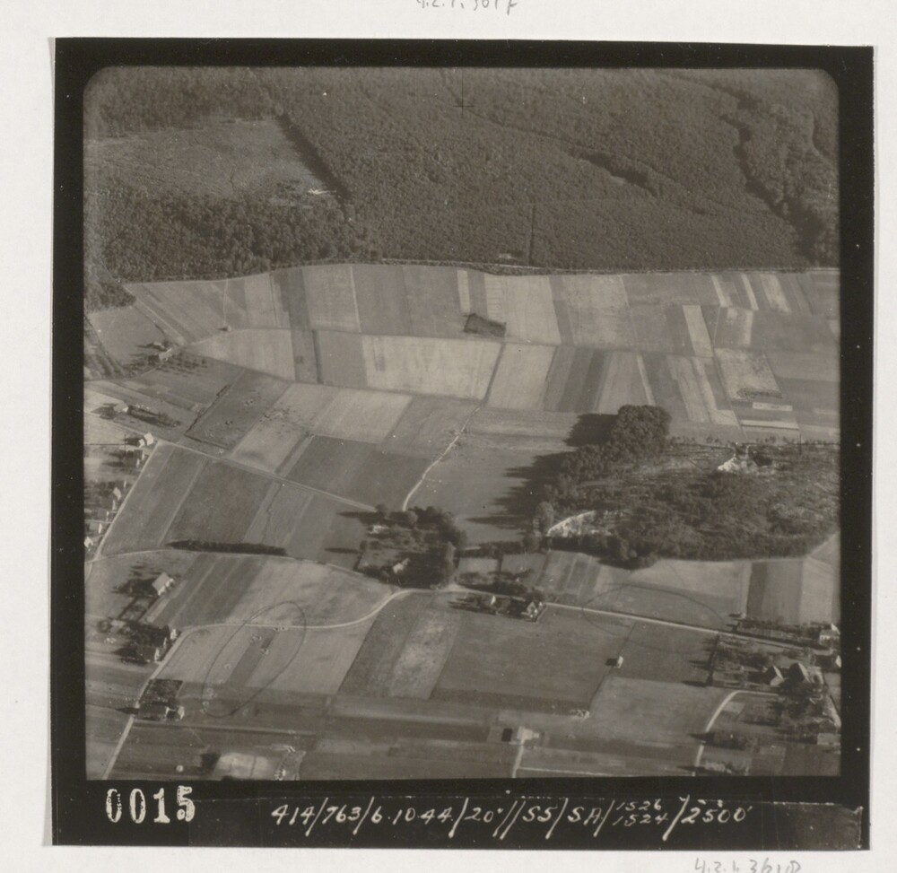 Luchtfoto (low oblique) van boerderijen met Reichswa...