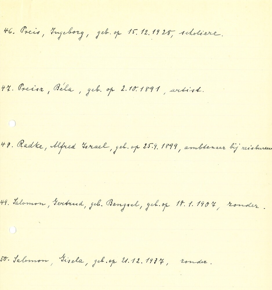 Namenlijst van vermoedelijke Joodse vluchtelingen