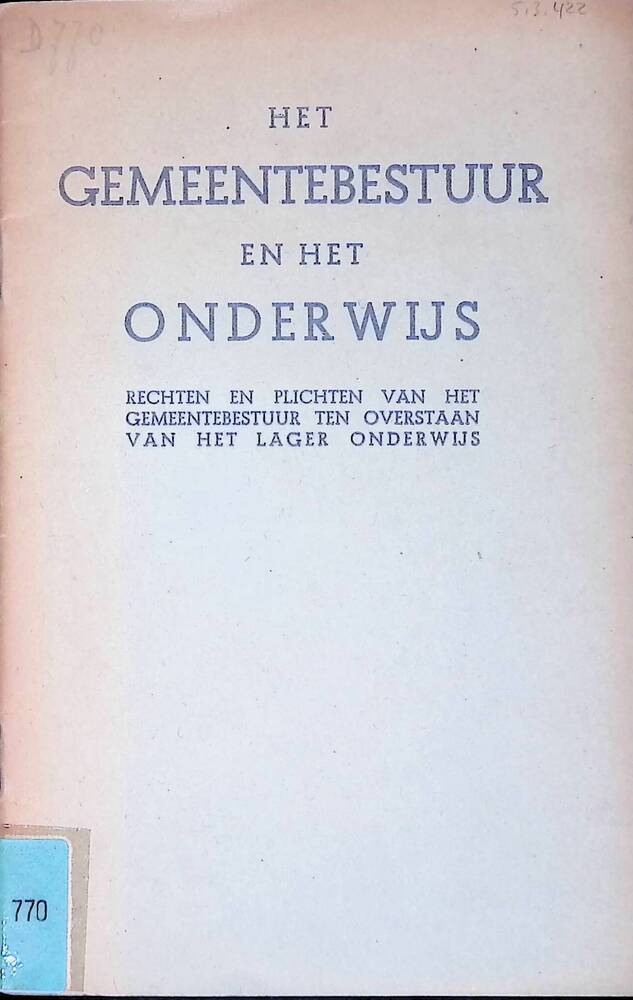 Brochure: Het gemeentebestuur en het onderwijs (V.N....