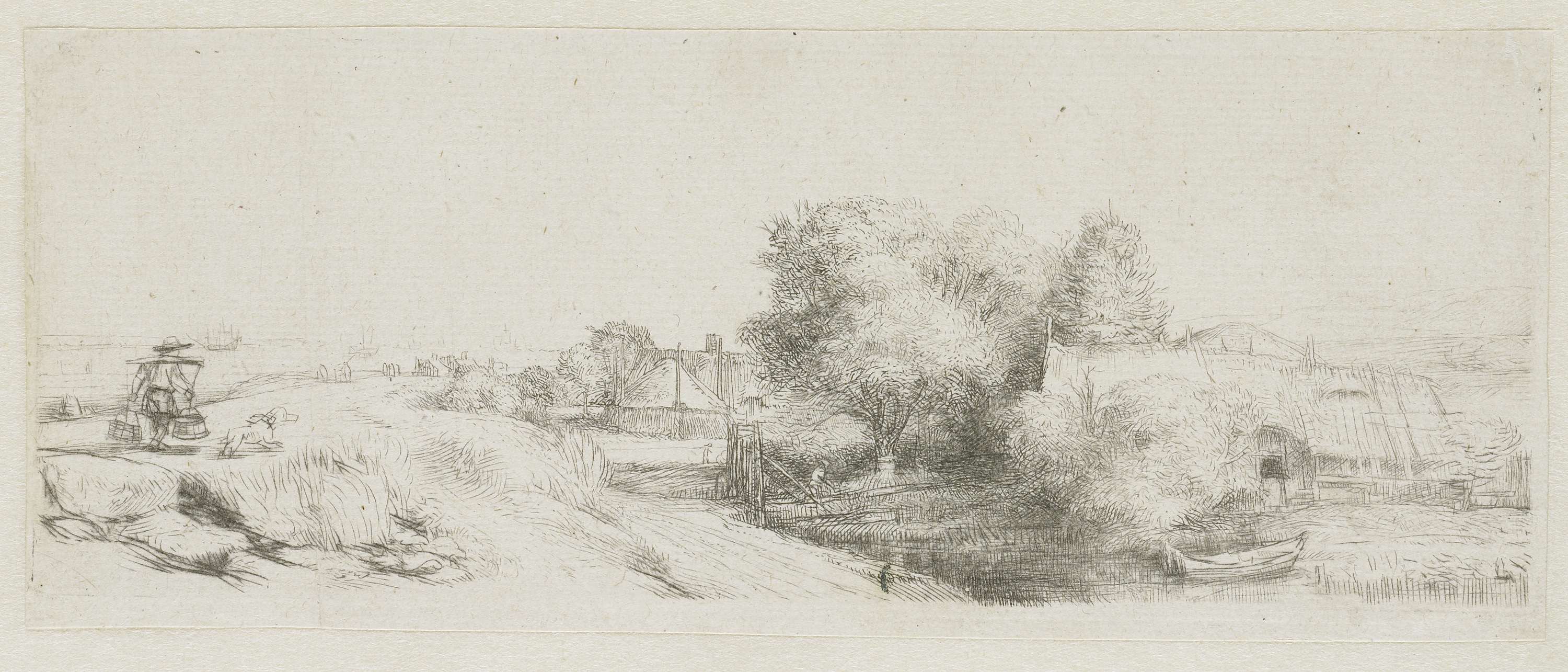 View of the Diemerdijk with a milkman and cottages