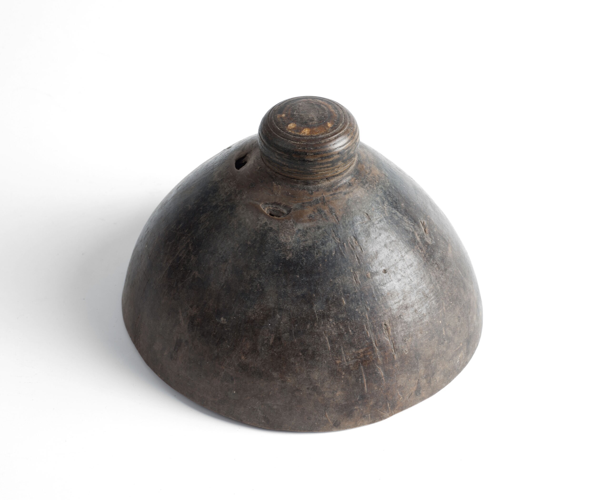 Halve kokosnoot met houten handvat, deksel voor een ...