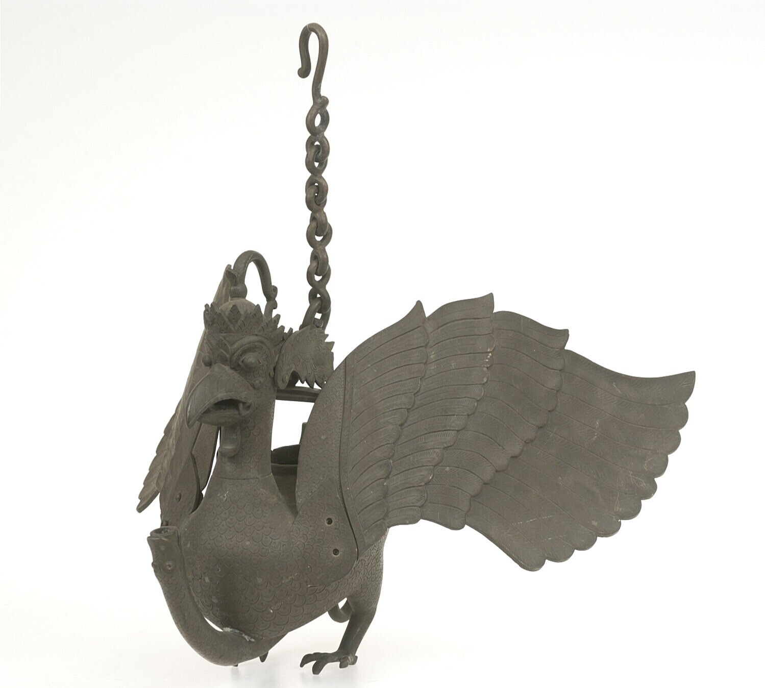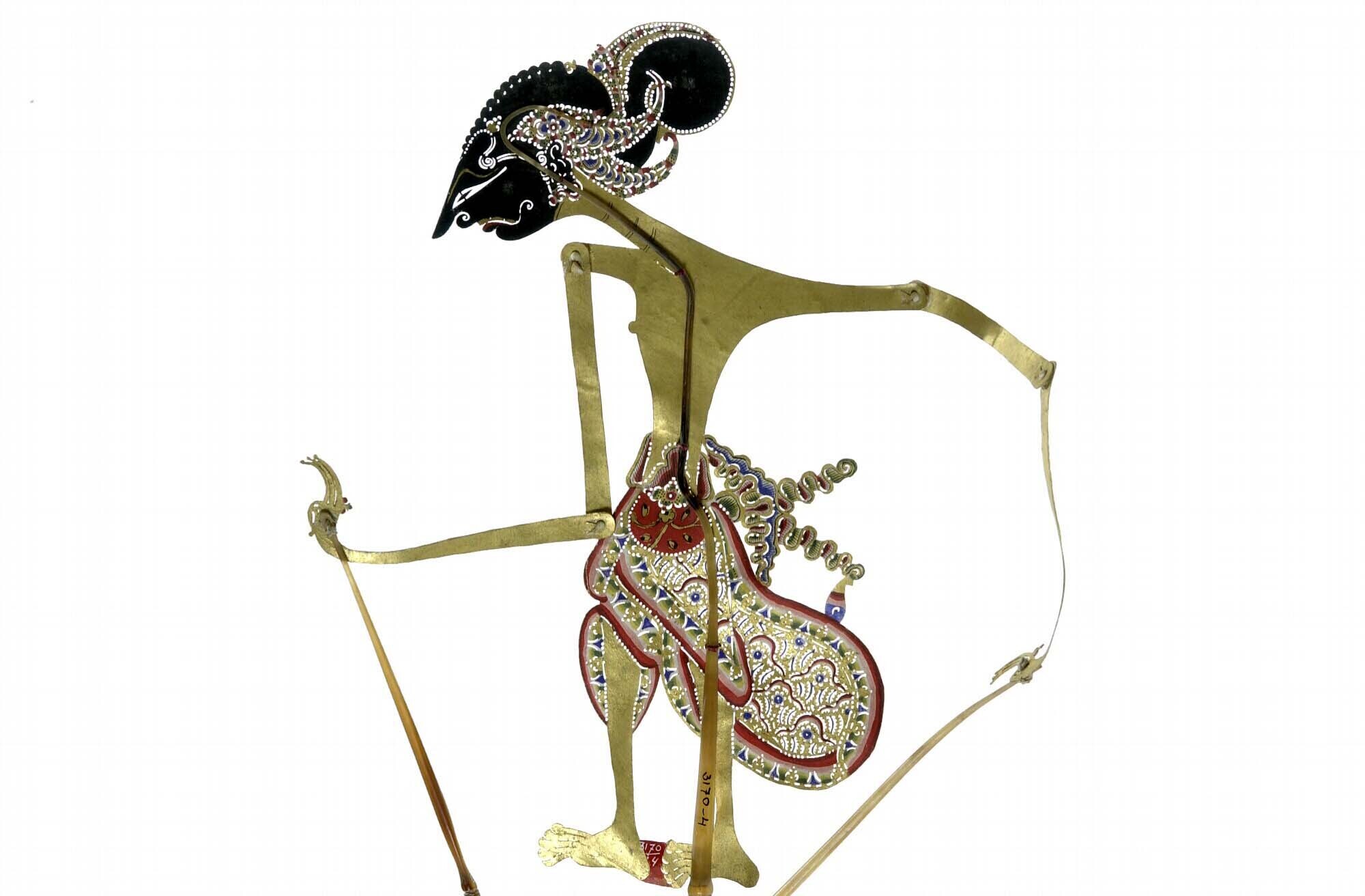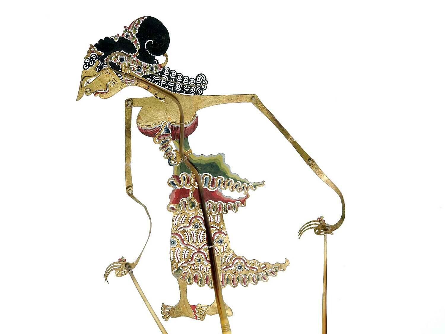 Messing wajanglamp voorstellende een gekroonde Garuda