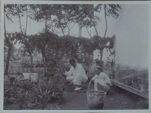 Kinderen met javaanse man en Europes vrouw in een tuin