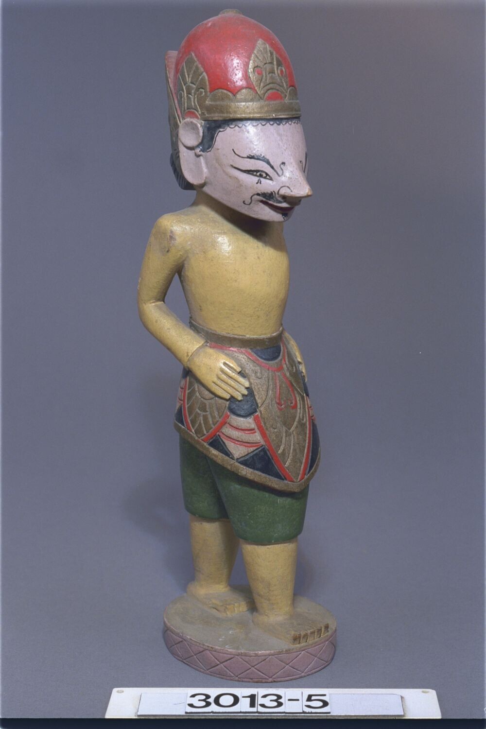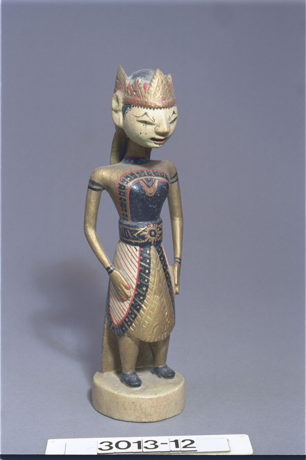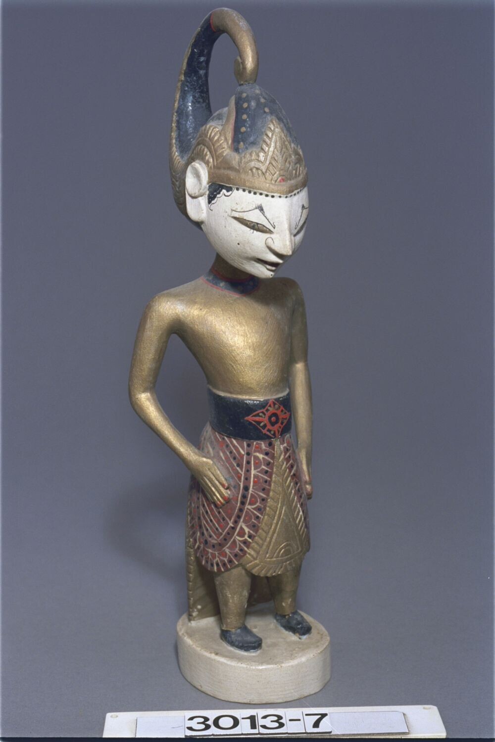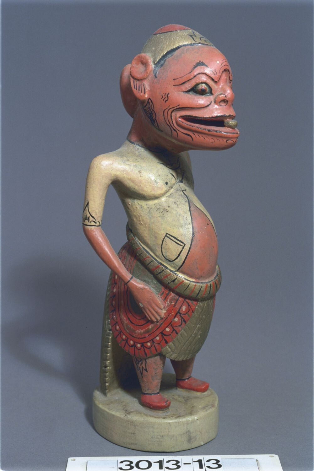 Gesnlen en beschilderd houten beeld voorstellende wa...