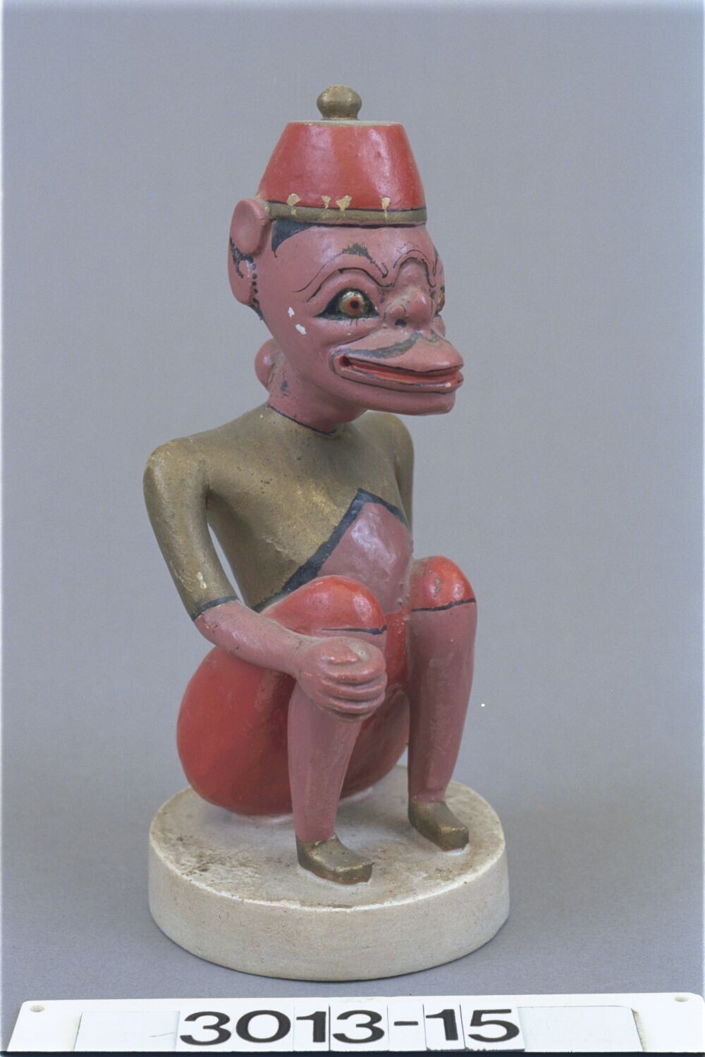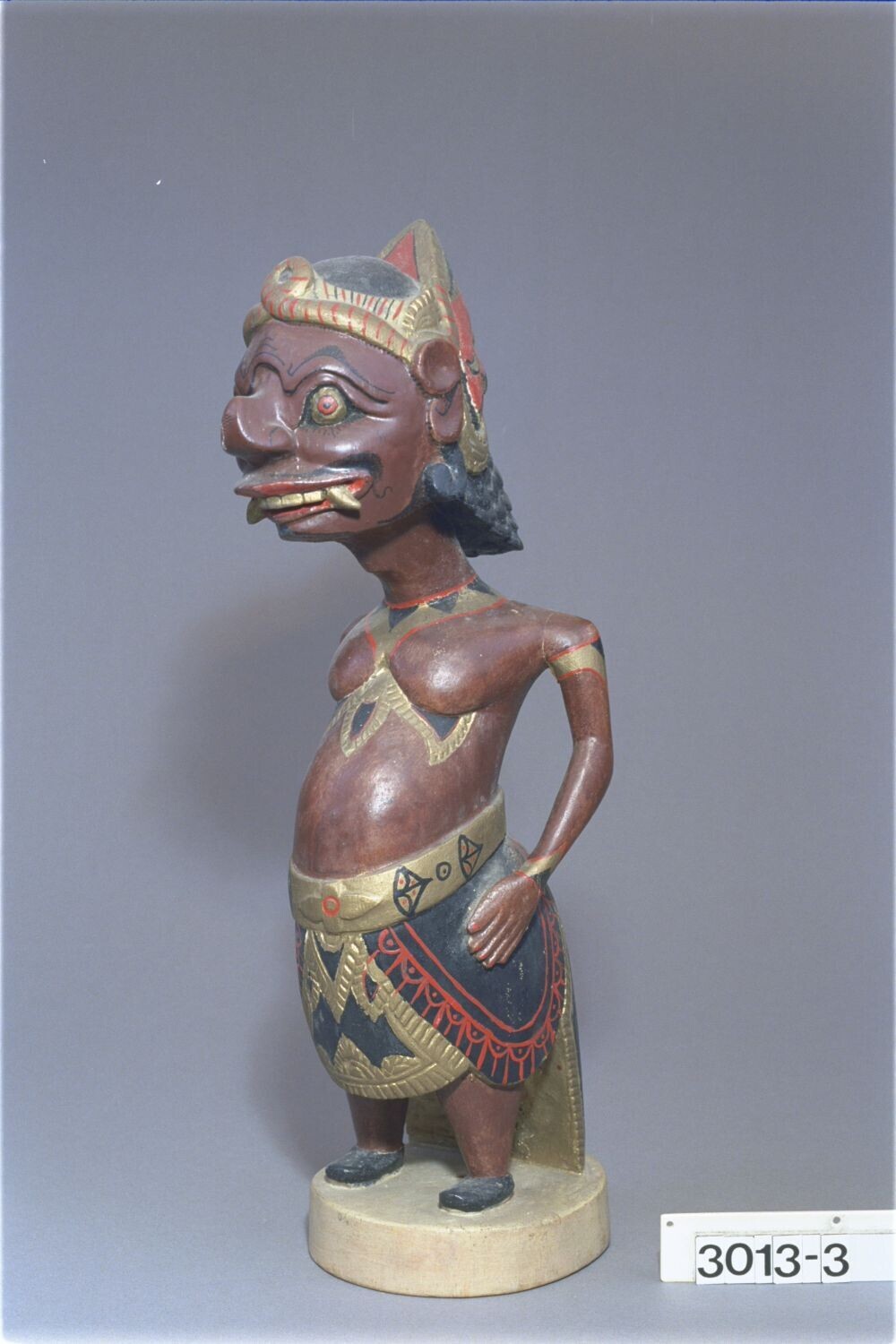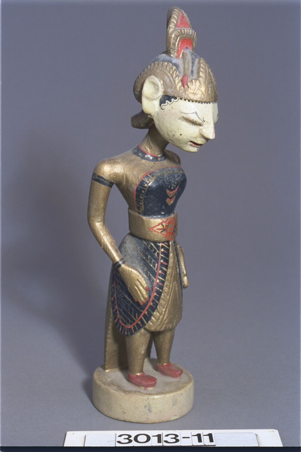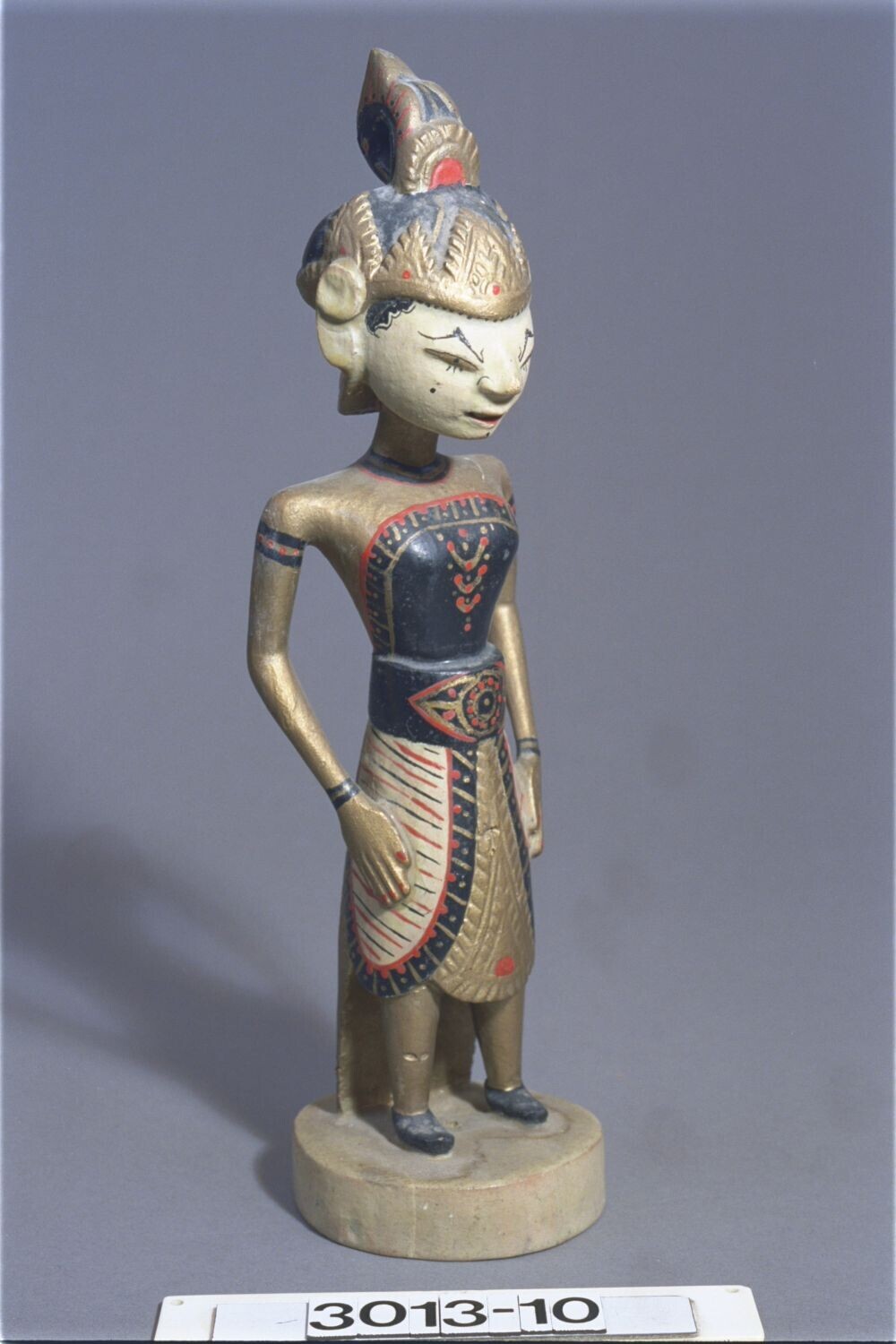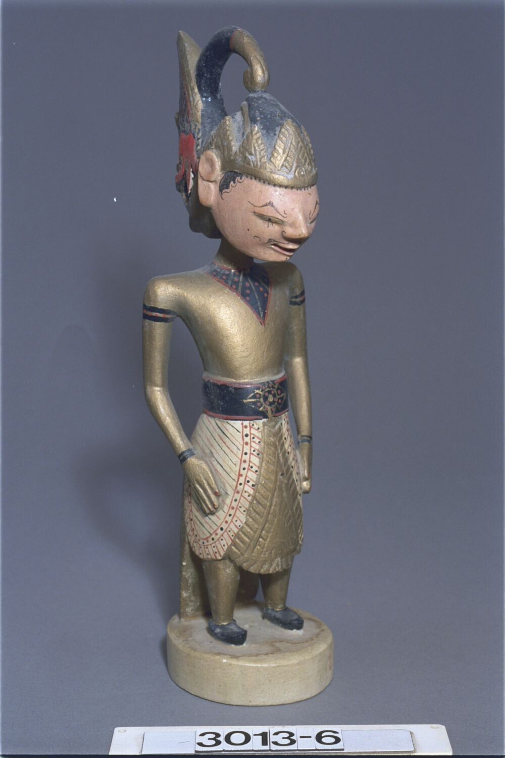 Gesnlen en beschilderd houten beeld voorstellende wa...