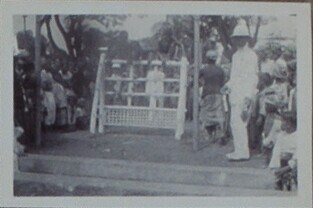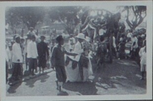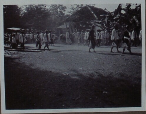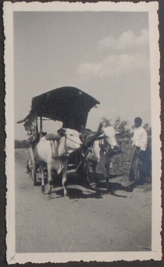 Stoet met javaanse man en vrouw en versierde ossenwa...