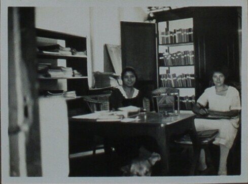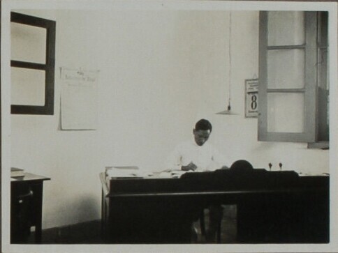 Drie javanen aan het werk in kantoor van suikerfabri...