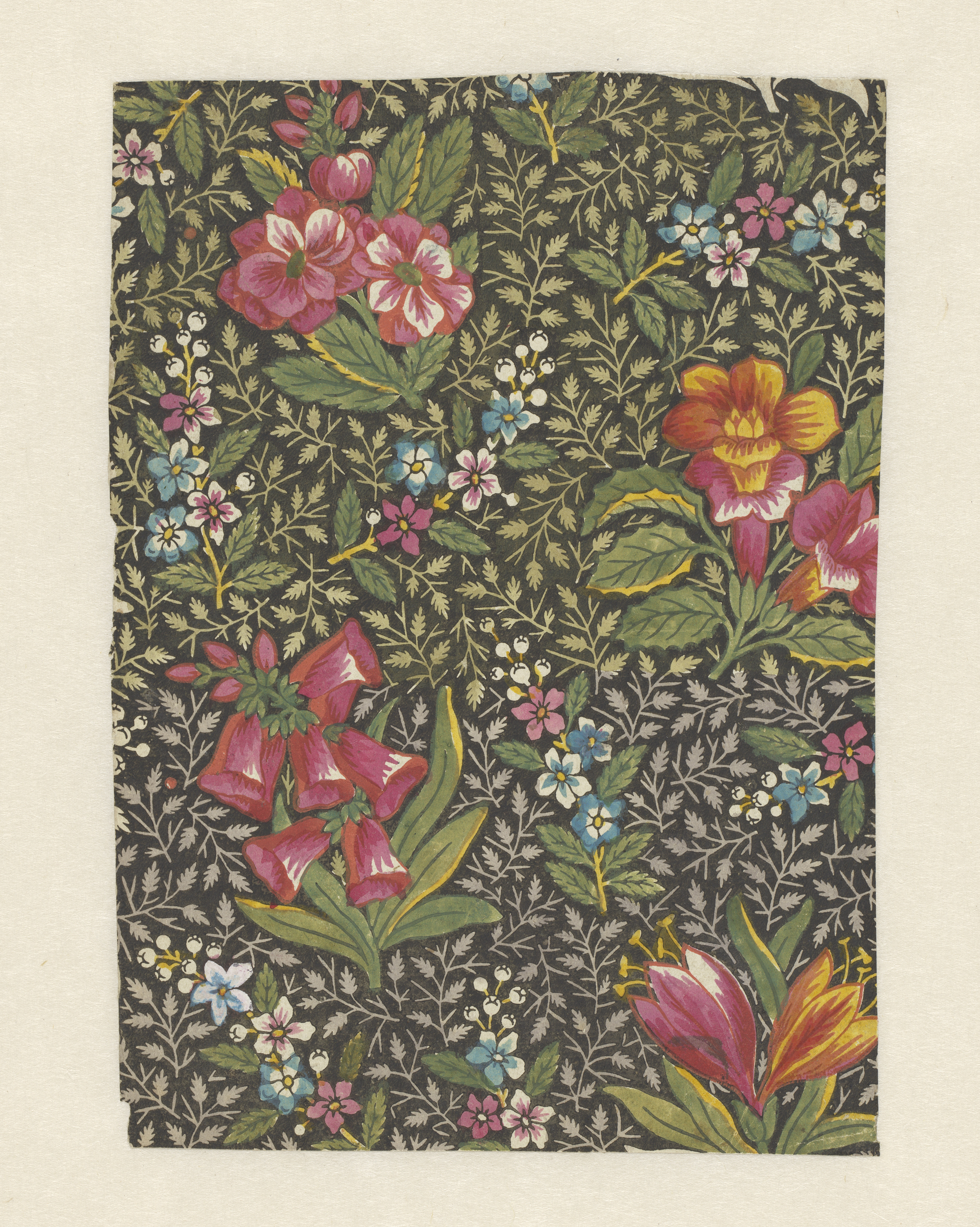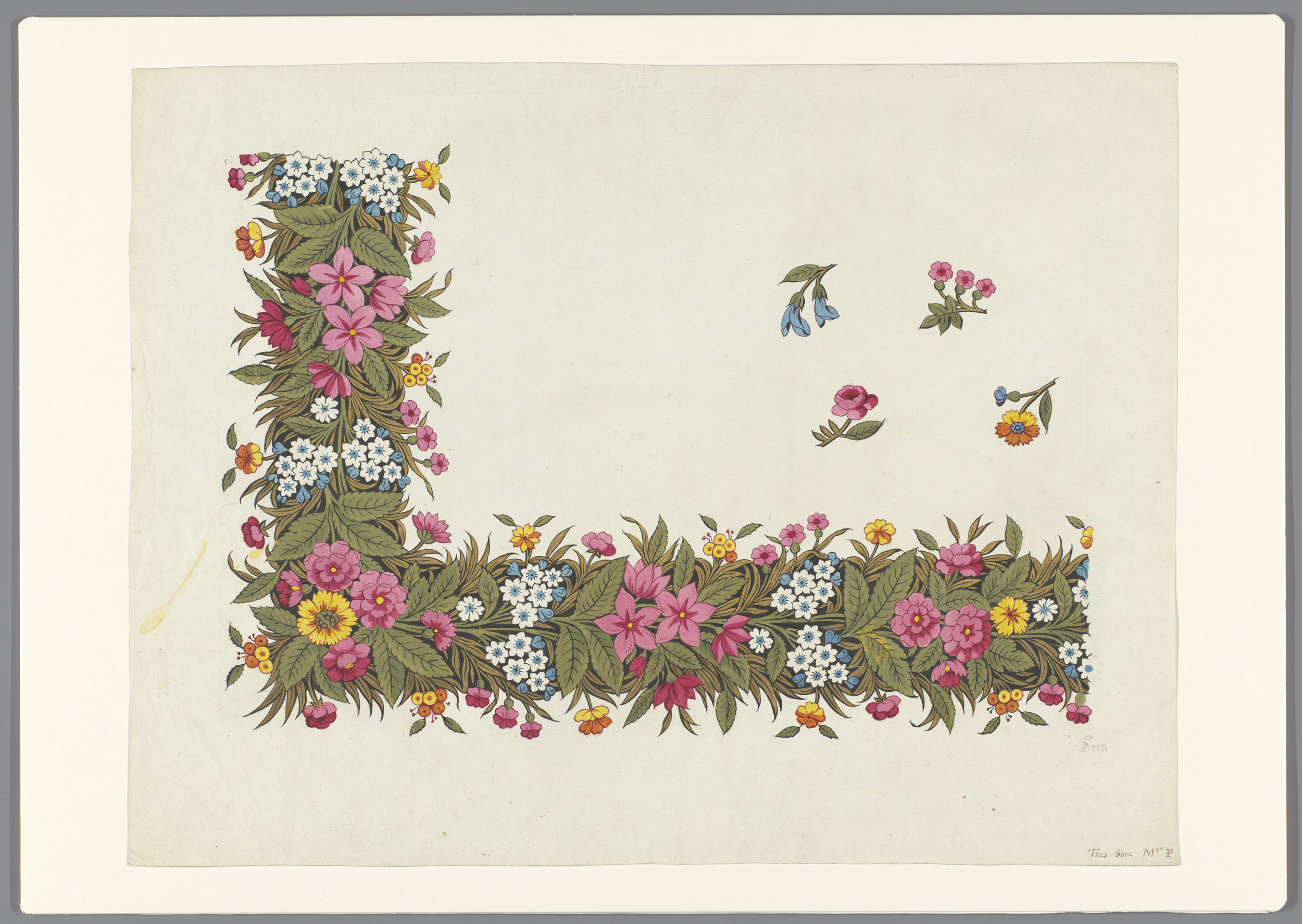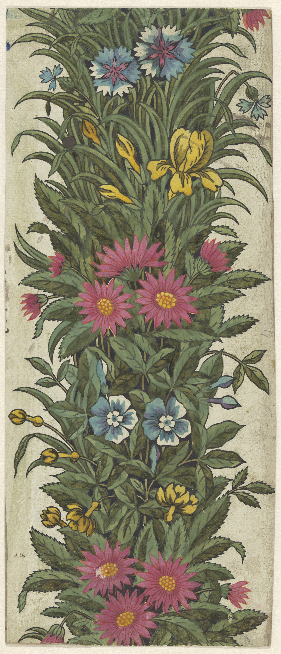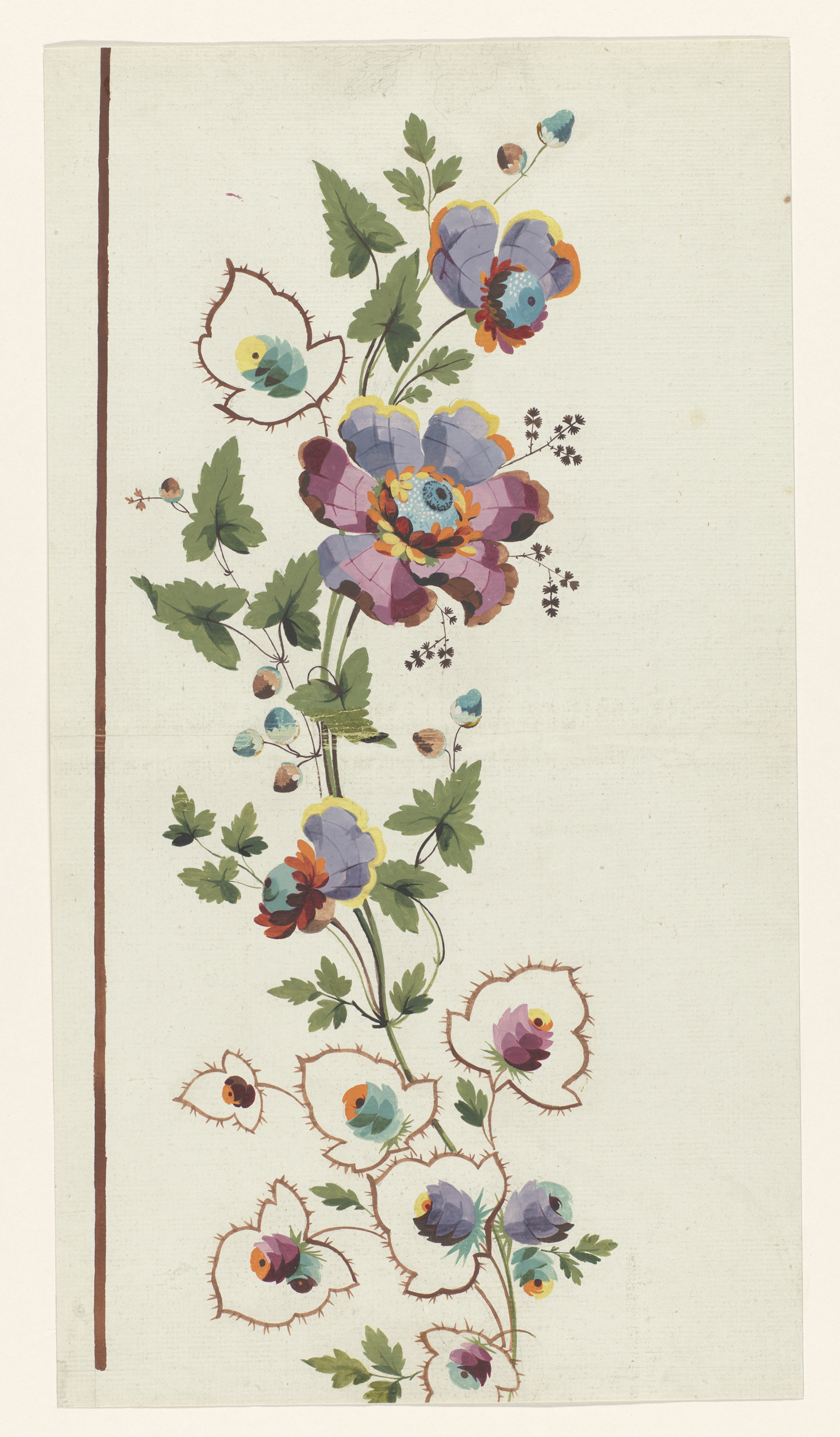 Ontwerp voor een staande rand van bladeren, seringen...
