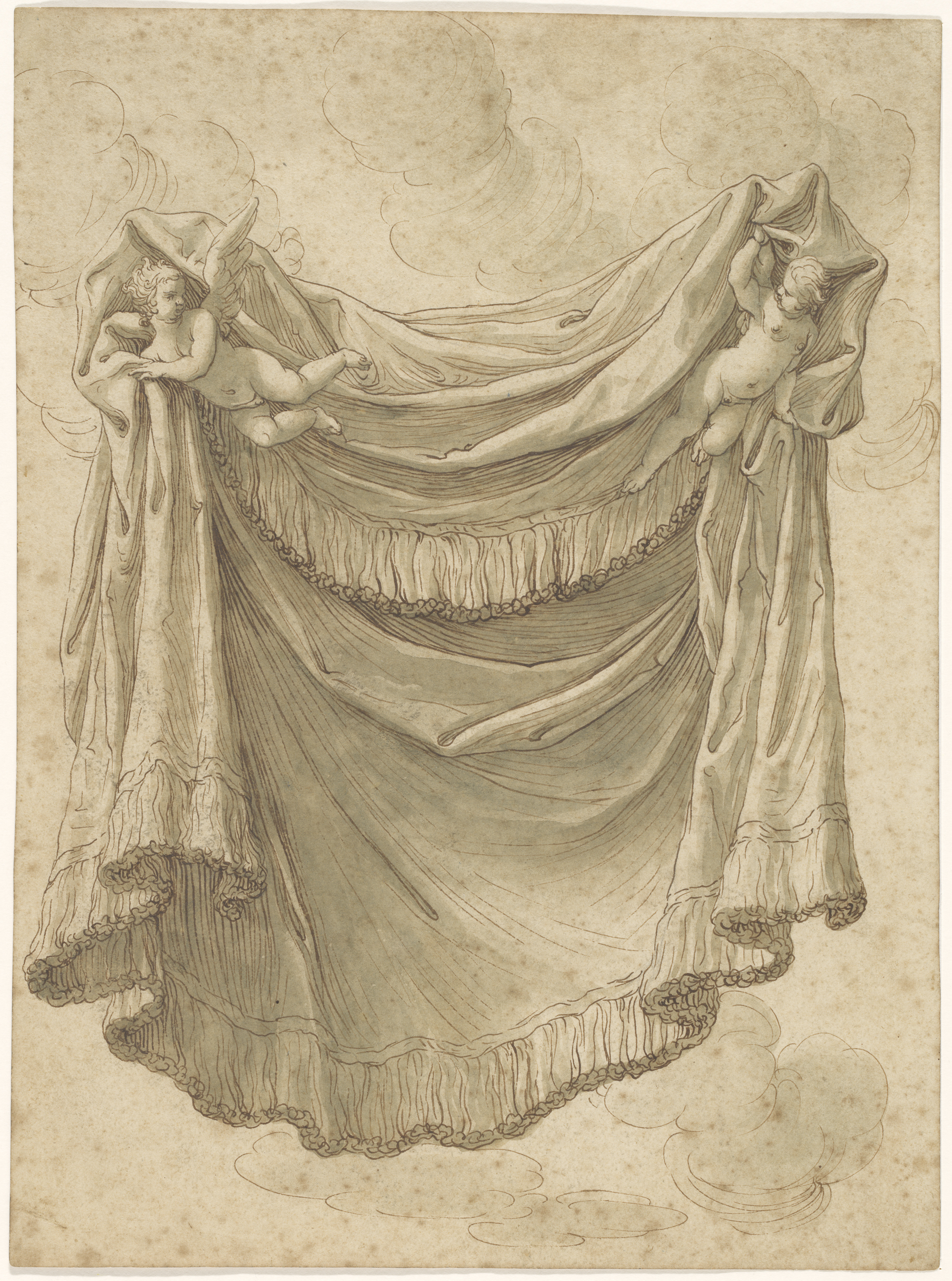 Draperie, gedragen door twee engelen