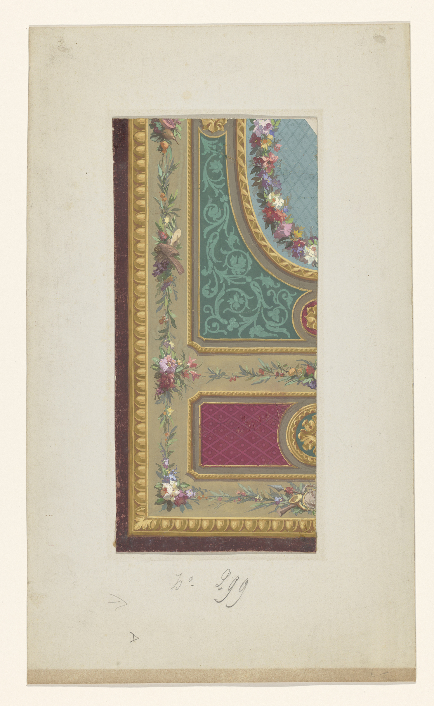 Ontwerp voor de verguld bronzen montuur van een pors...