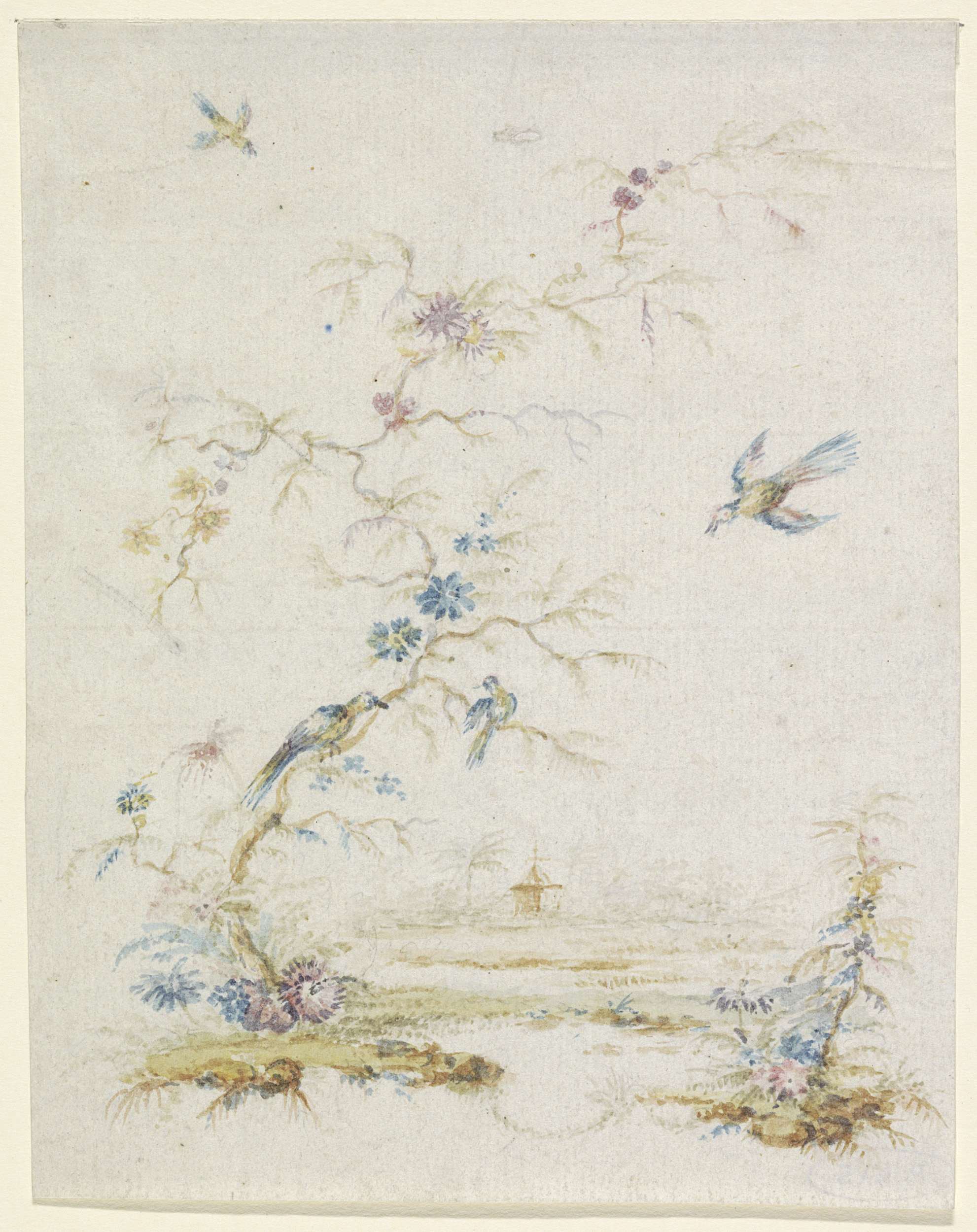 Boom met vogels
