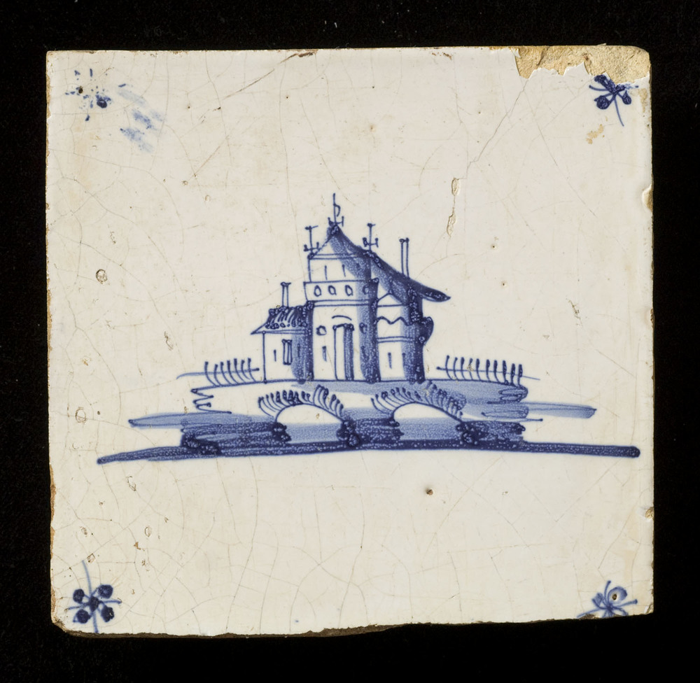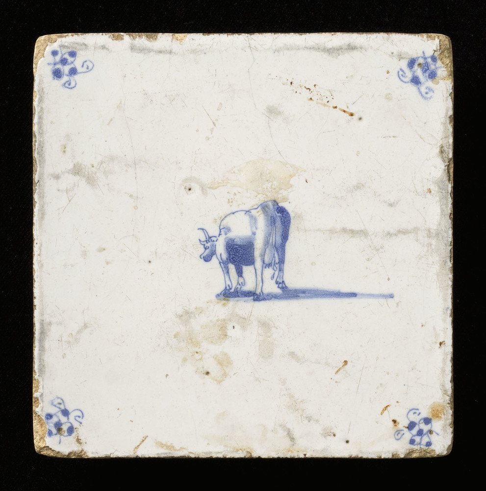 tegel van aardewerk met tinglazuur, voorstellende: h...