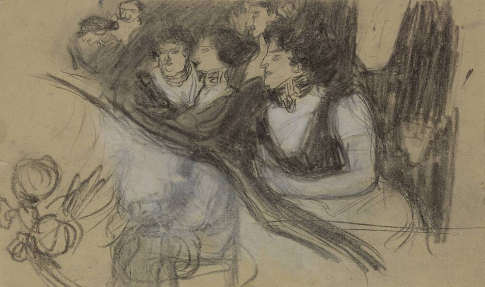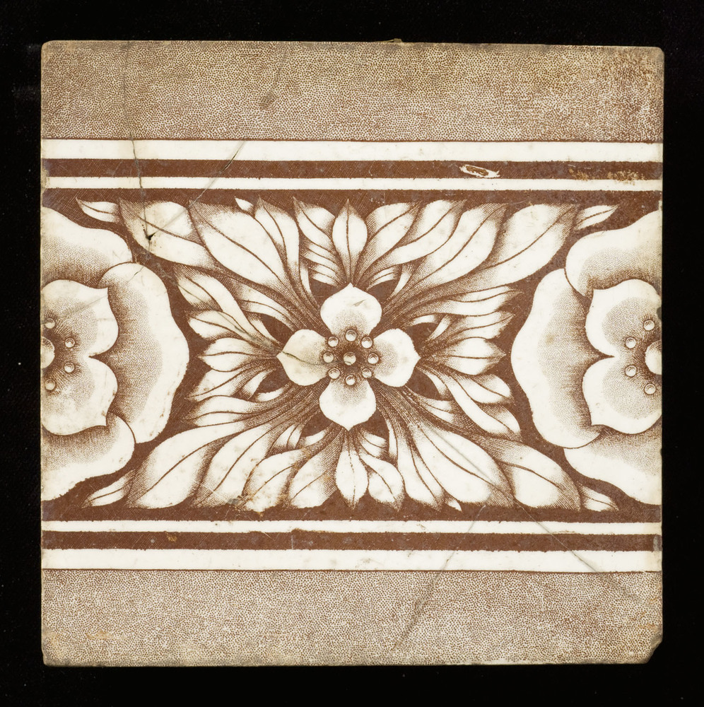 Randtegel in transfer-techniek, met voorstelling: Ge...