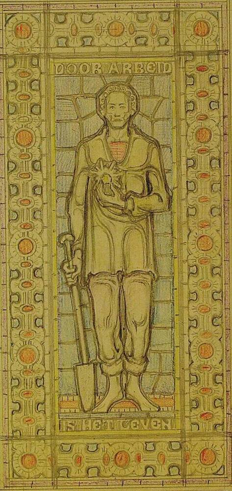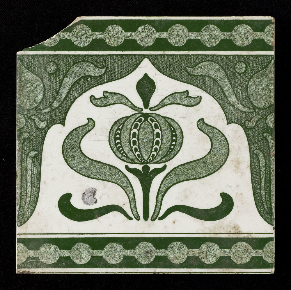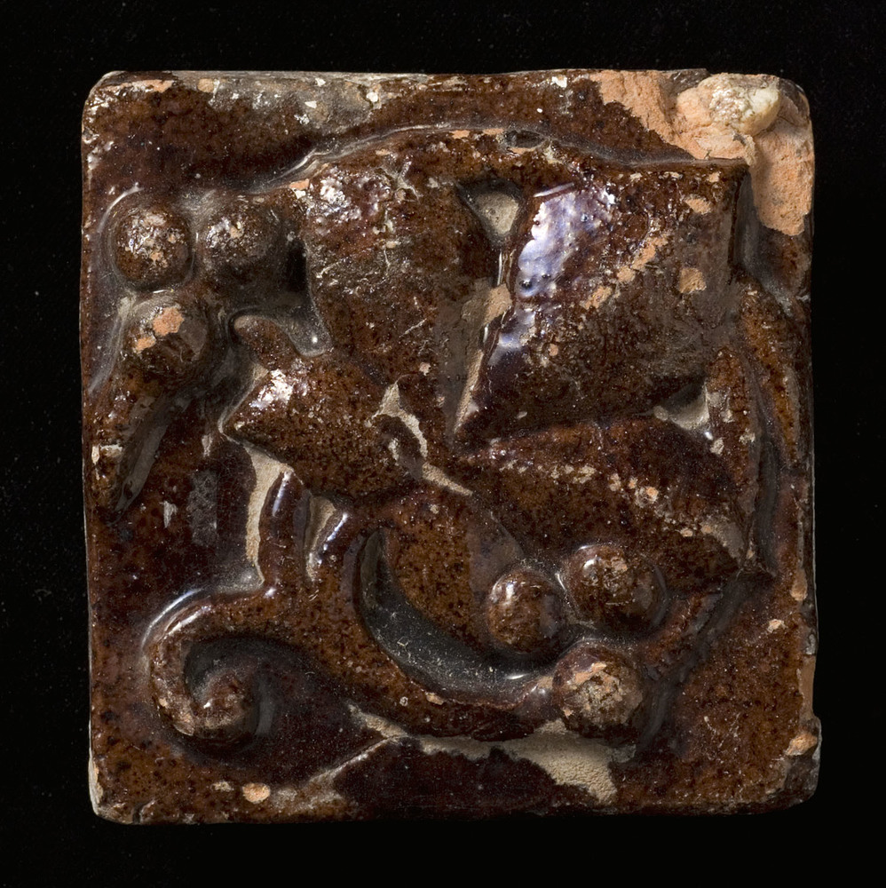 Tegel met bladmotief in reliëf, vervaardigd in Tegel...