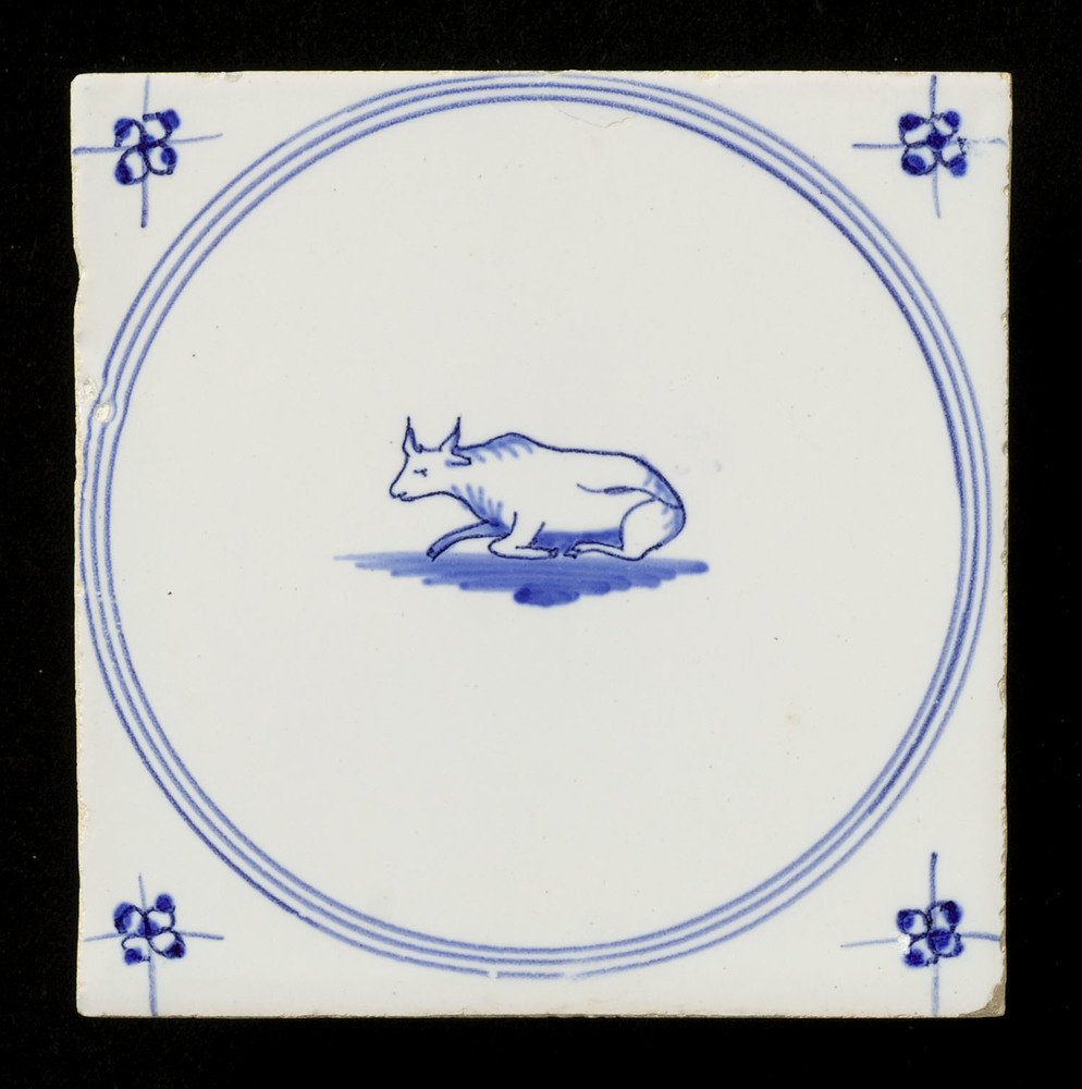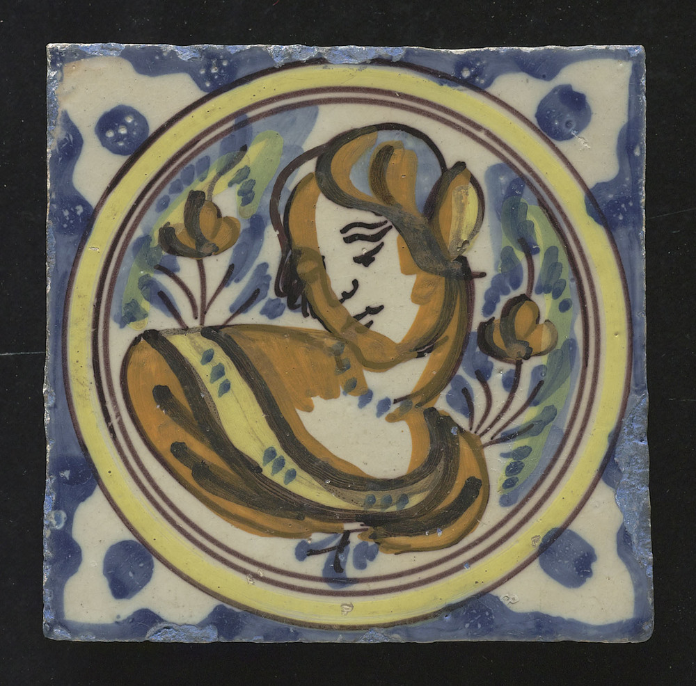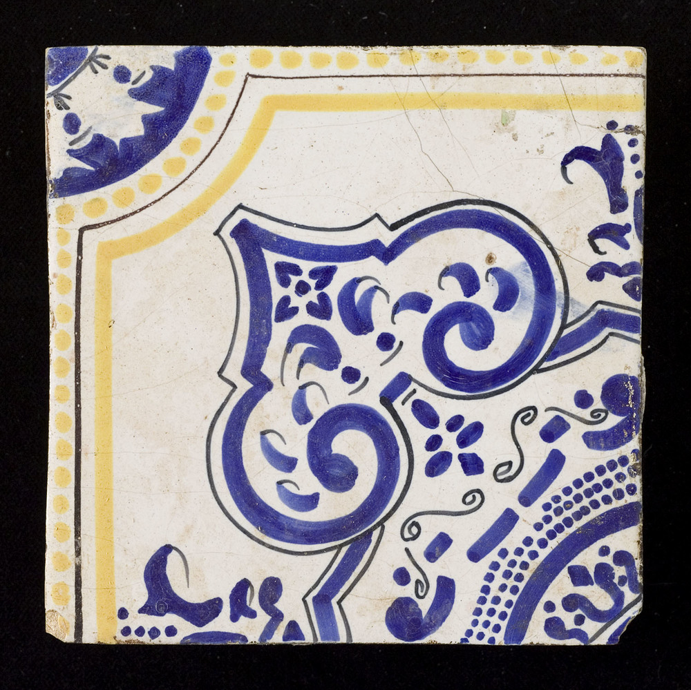Tegel van keramiek met tinglazuur, voorstellende: or...