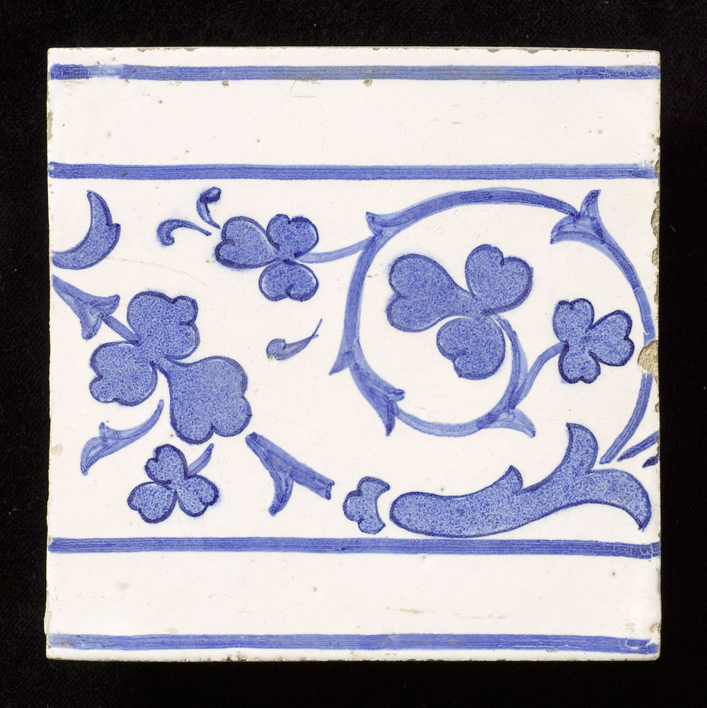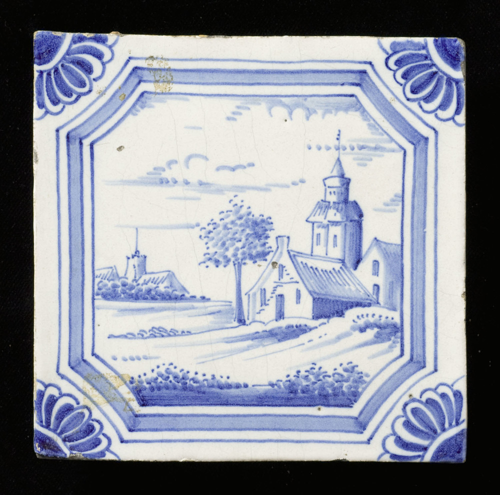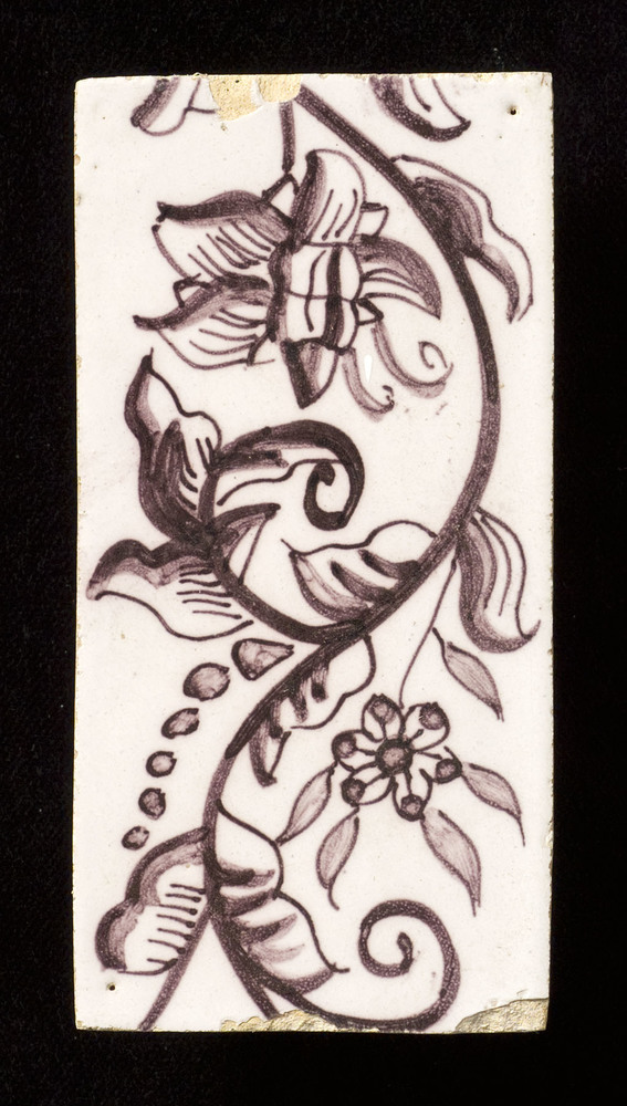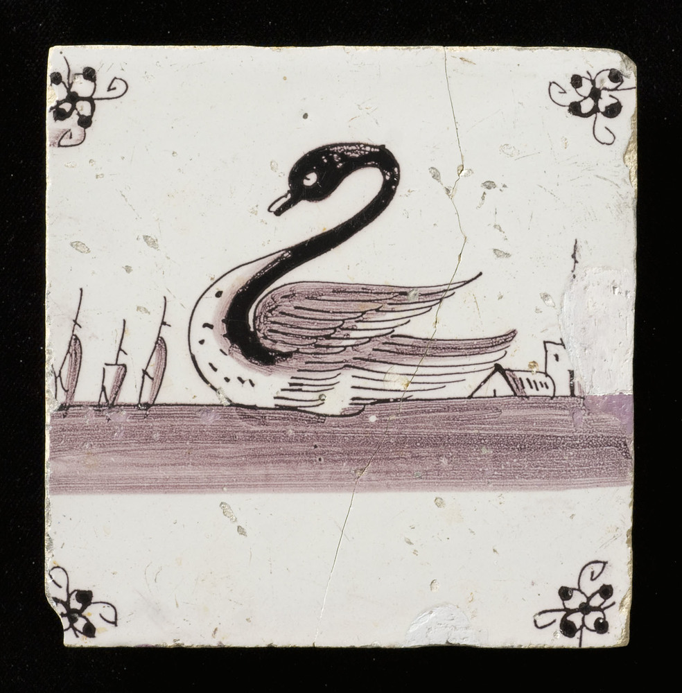 Tegel van keramiek met tinglazuur, voorstellende: or...