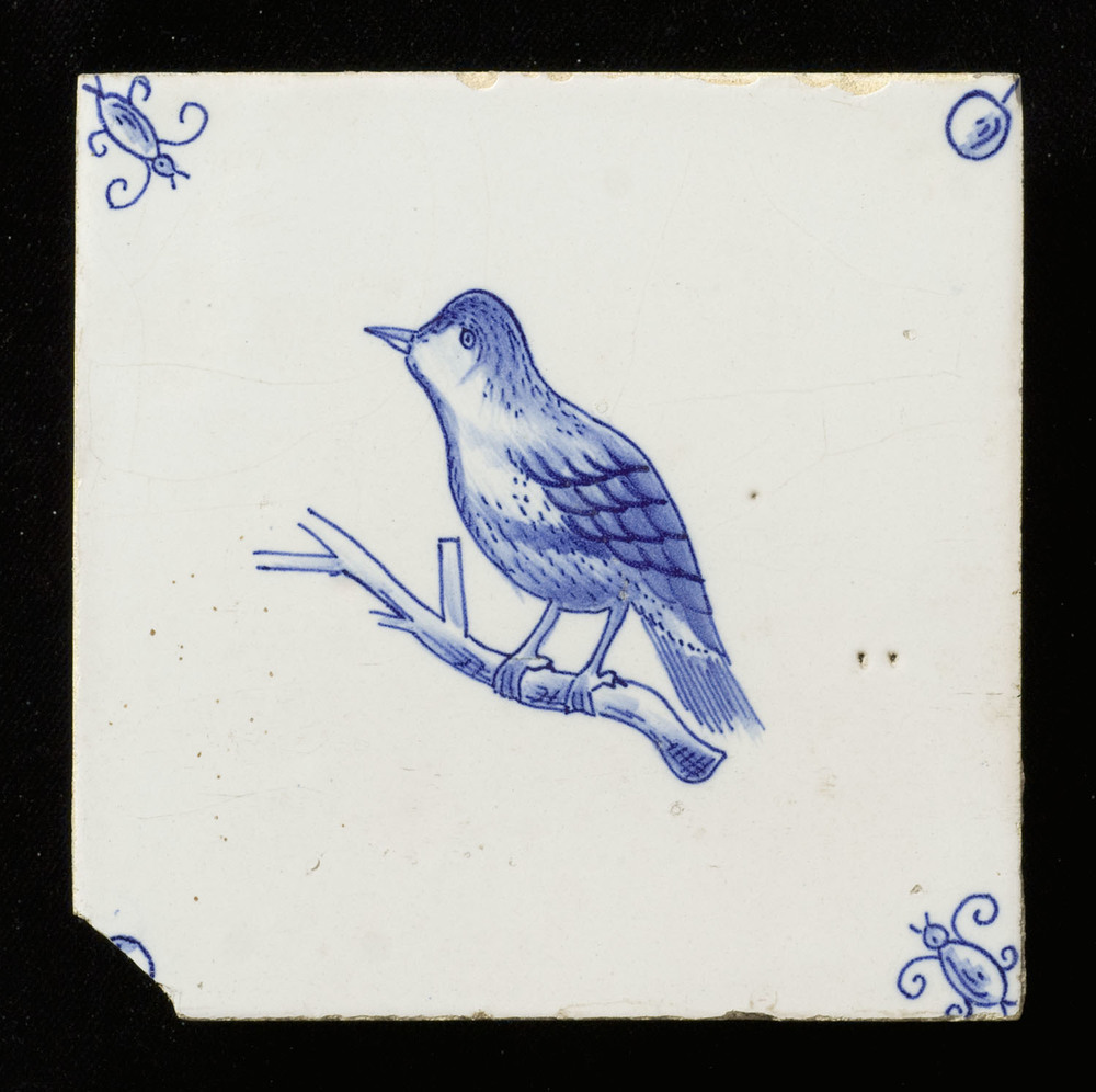 Tegel van keramiek, tinglazuur, voorstellende een bi...