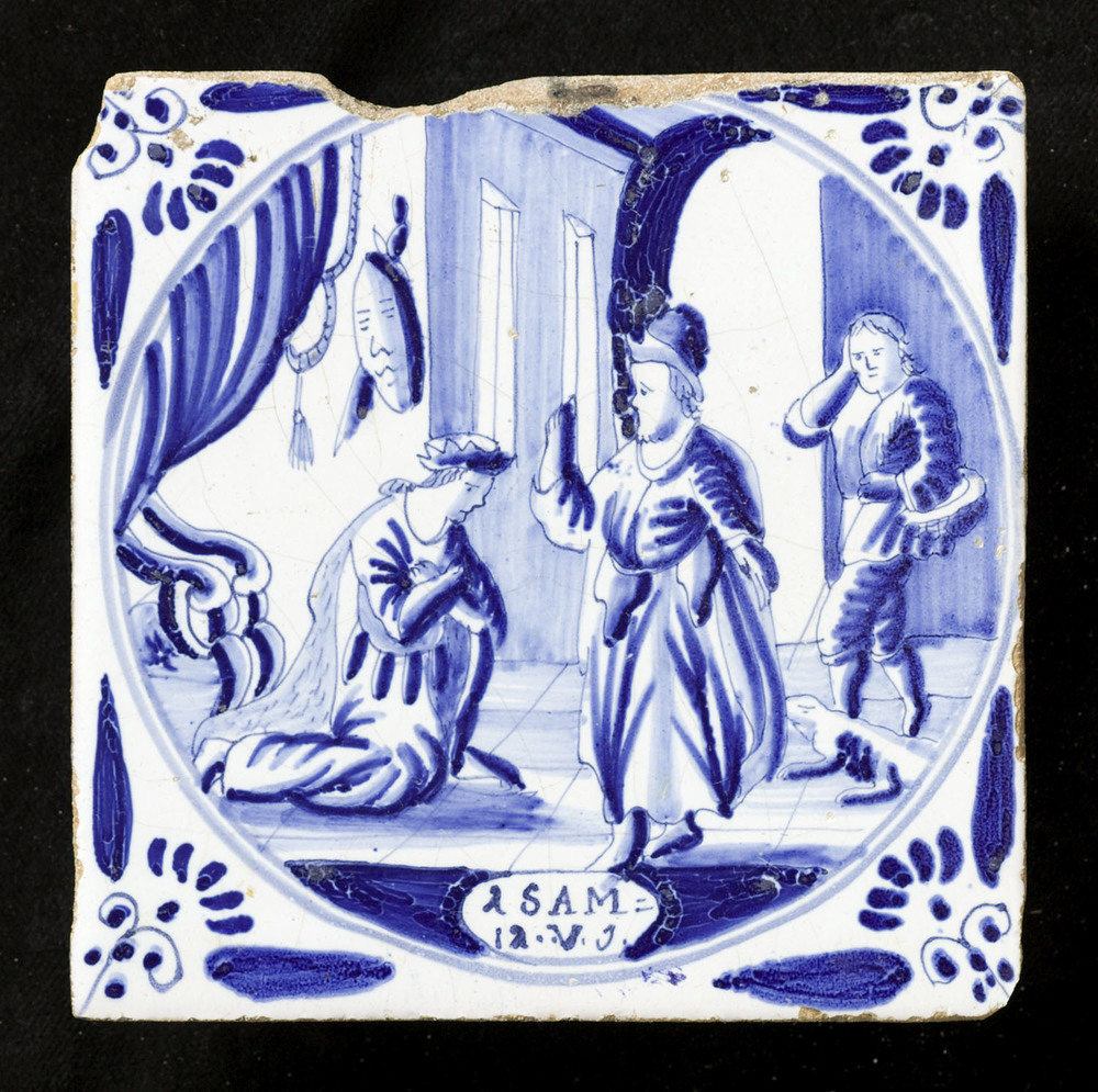 Tegel van keramiek, tinglazuur, voorstellende een zo...