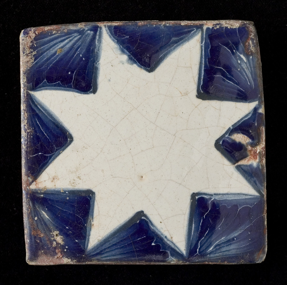 Tegel van keramiek, tinglazuur, voorstellende effen ...