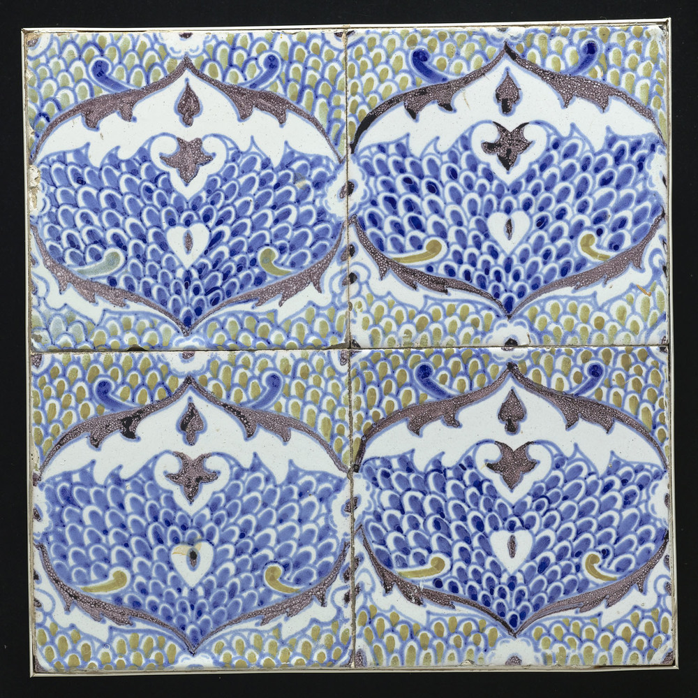 Tegelveld van keramiek, tinglazuur, voorstellende de...