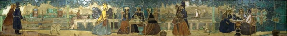 Tableau, getiteld 'de theetuin', gemaakt van keramis...