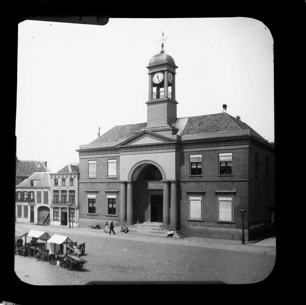 Ansichtkaart, voorstellende het stadhuis aan de Mark...
