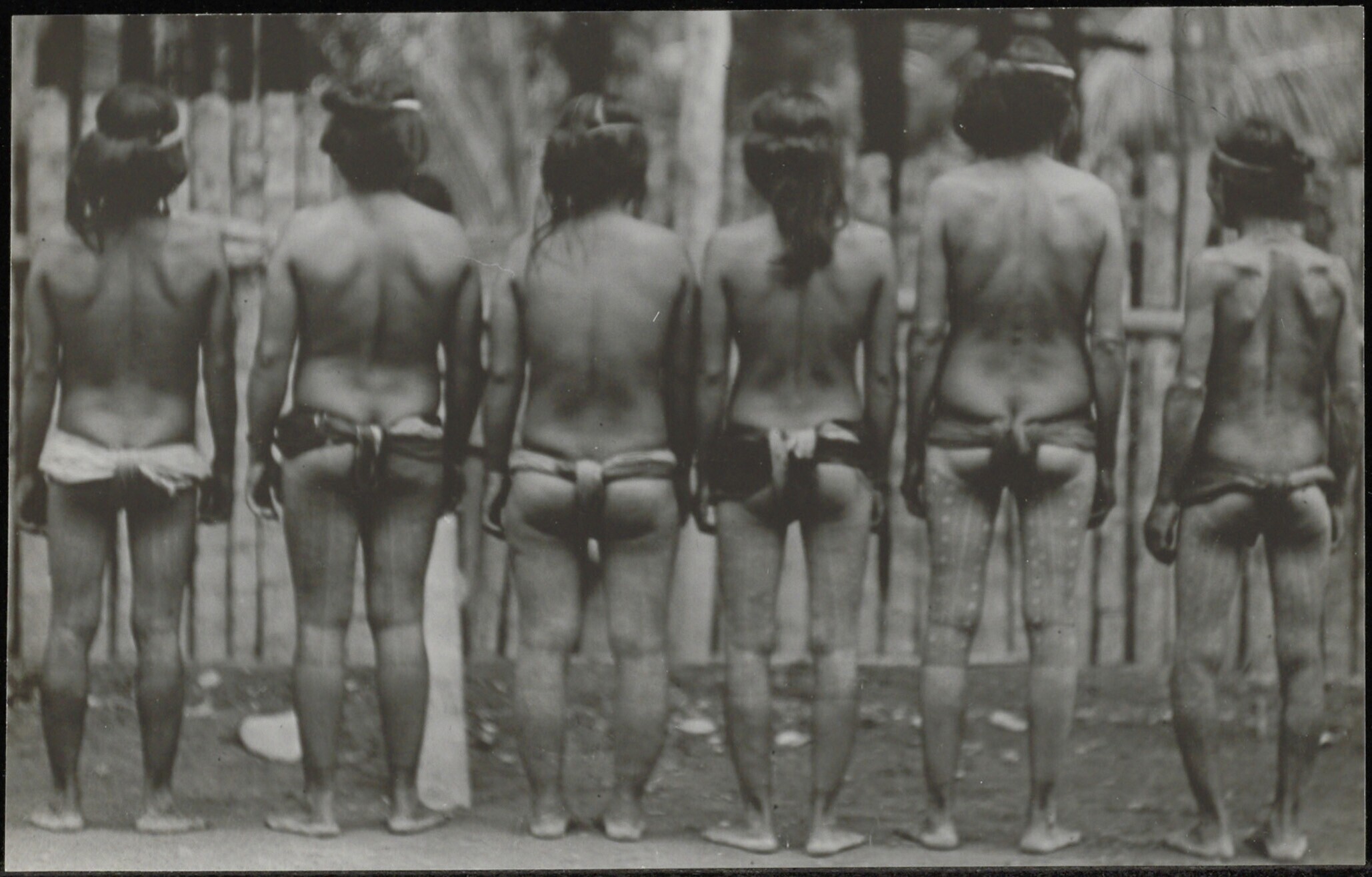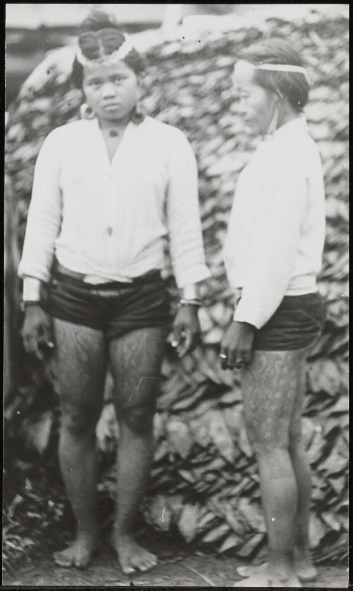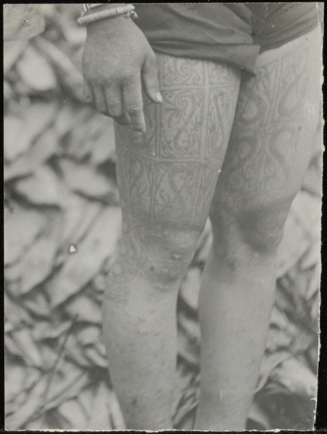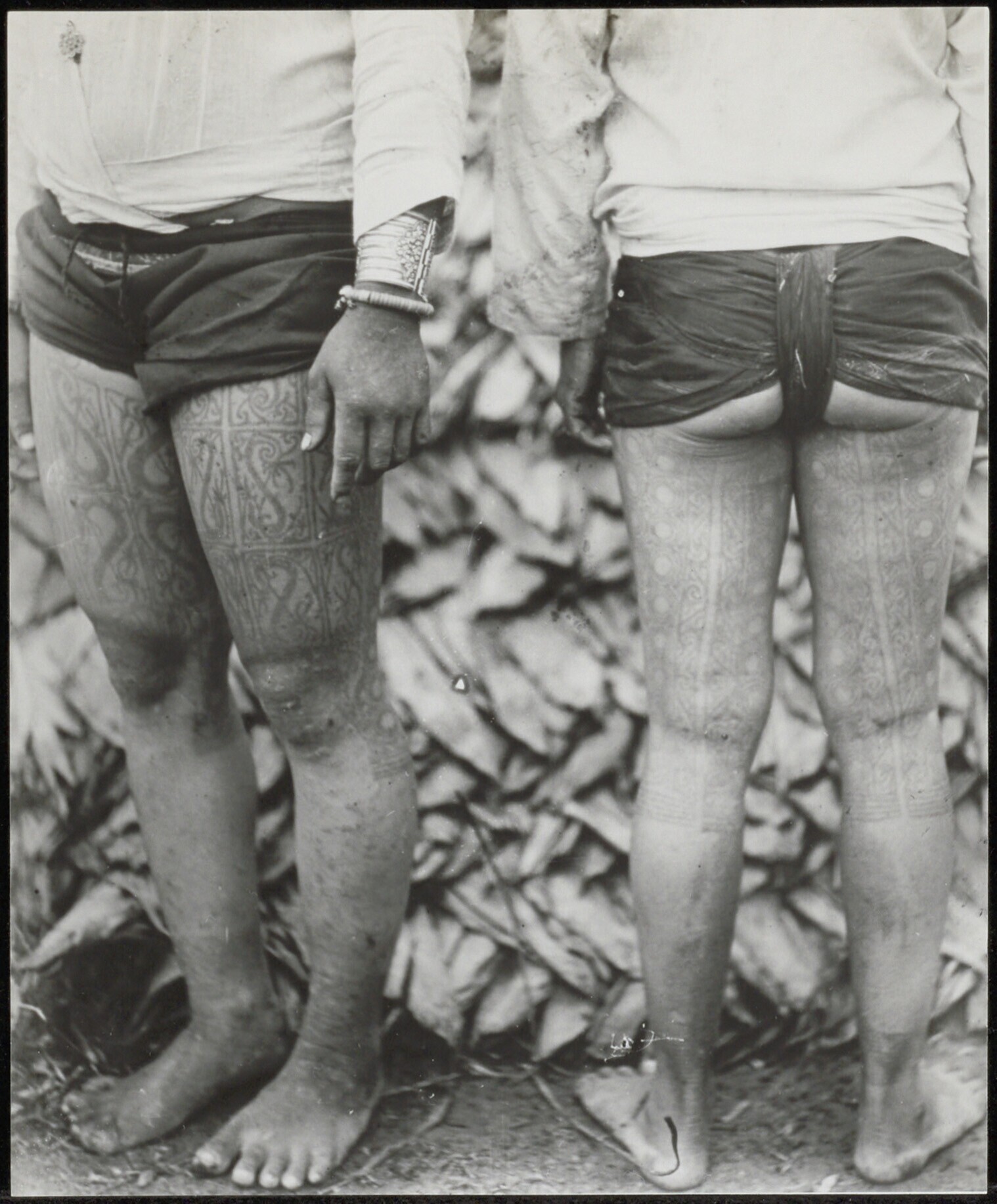 Getatoeëerde benen van Dayak vrouwen uit het gebied ...