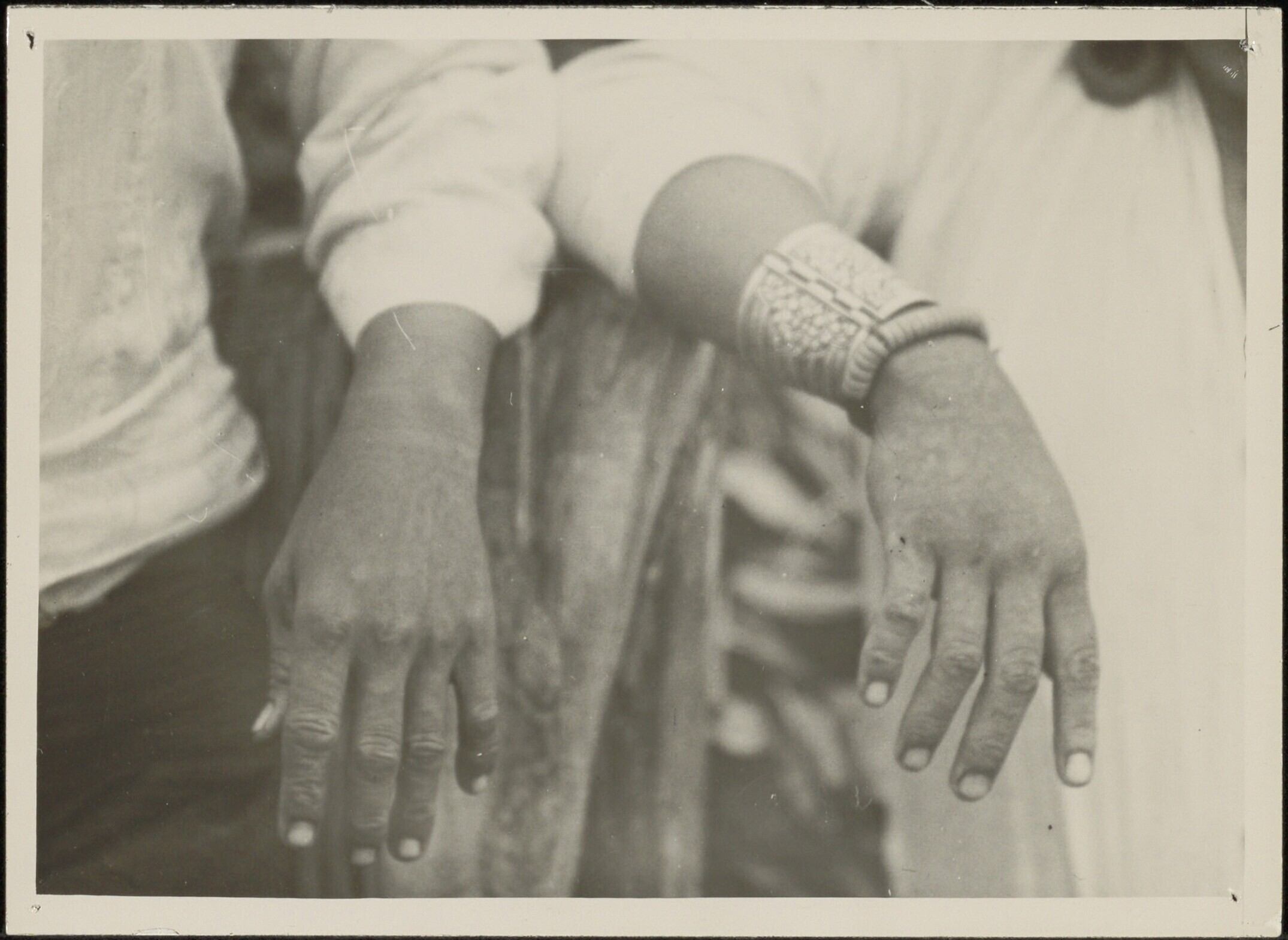 Getatoeëerde handen van Dayak vrouwen uit het gebied...