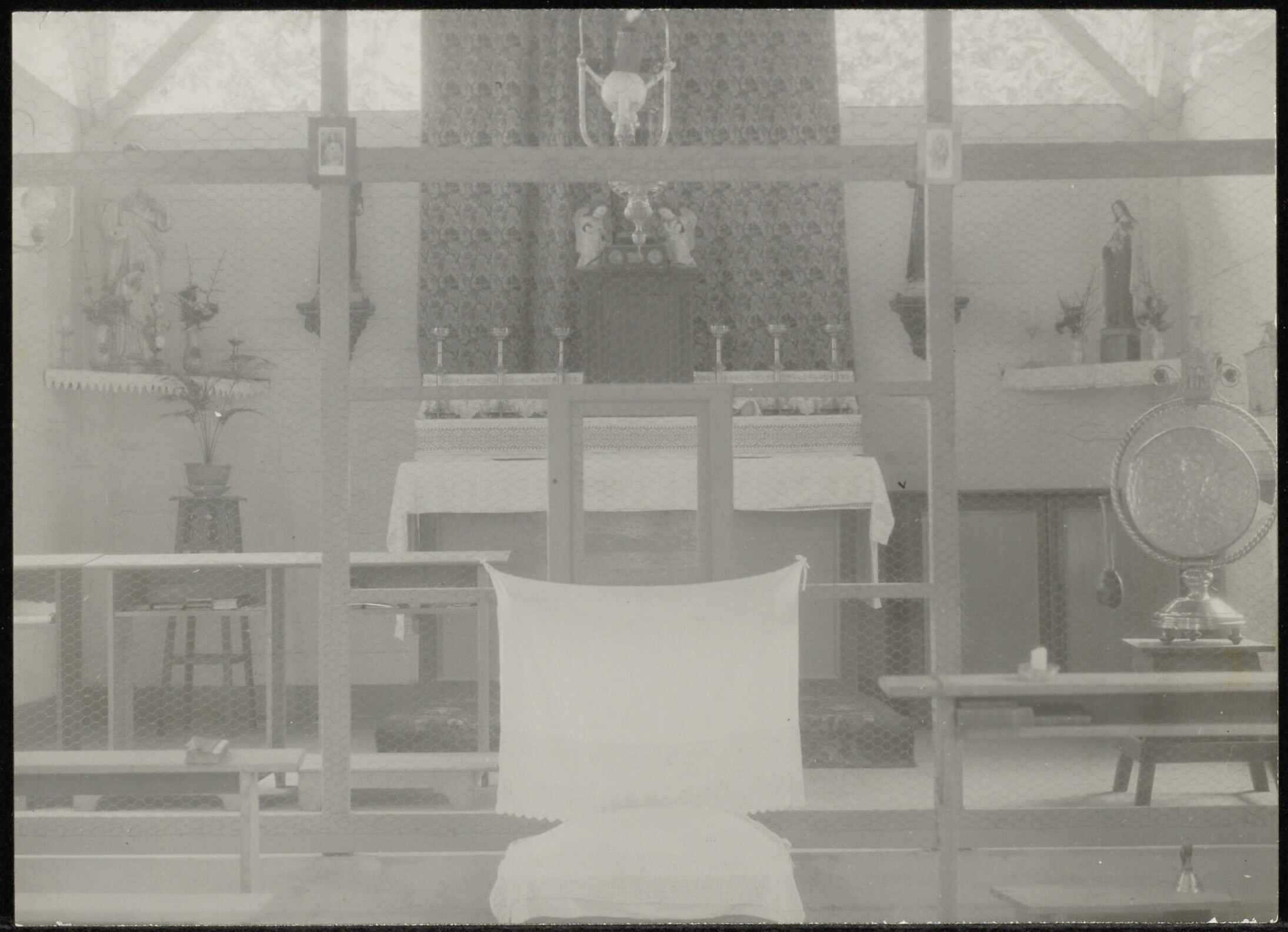 Een altaar in een leprozenkerk afgescheiden door ijz...