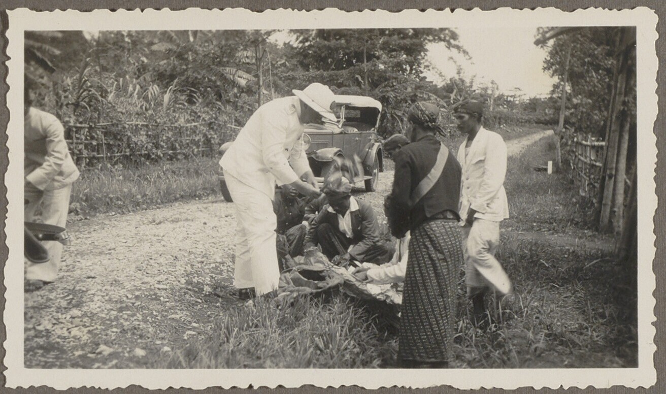 Uitdelen van stekken aan kolonisten bij Kalianda