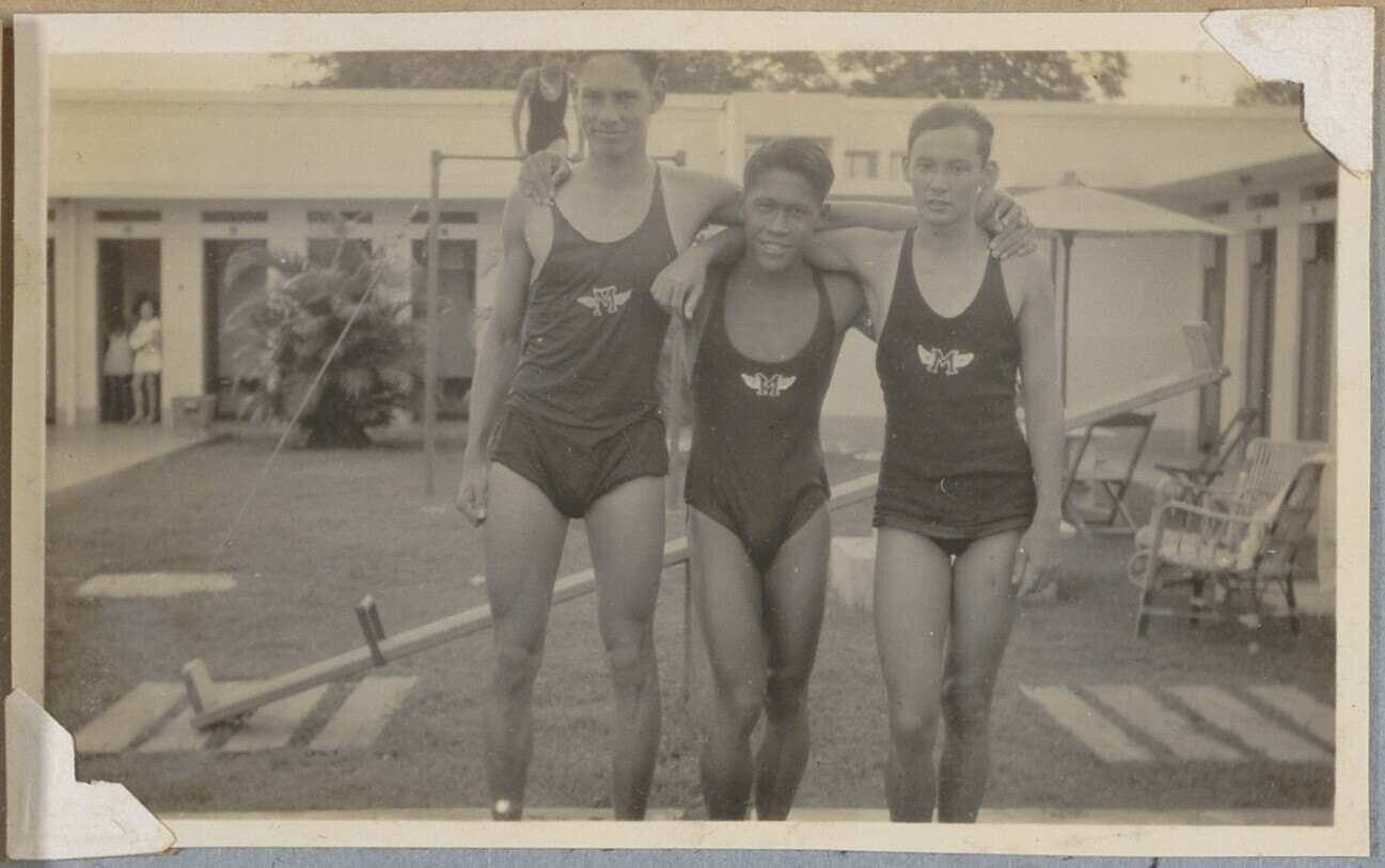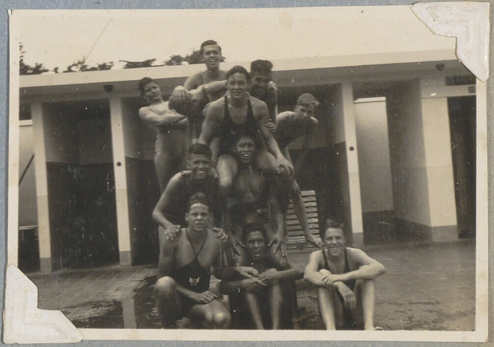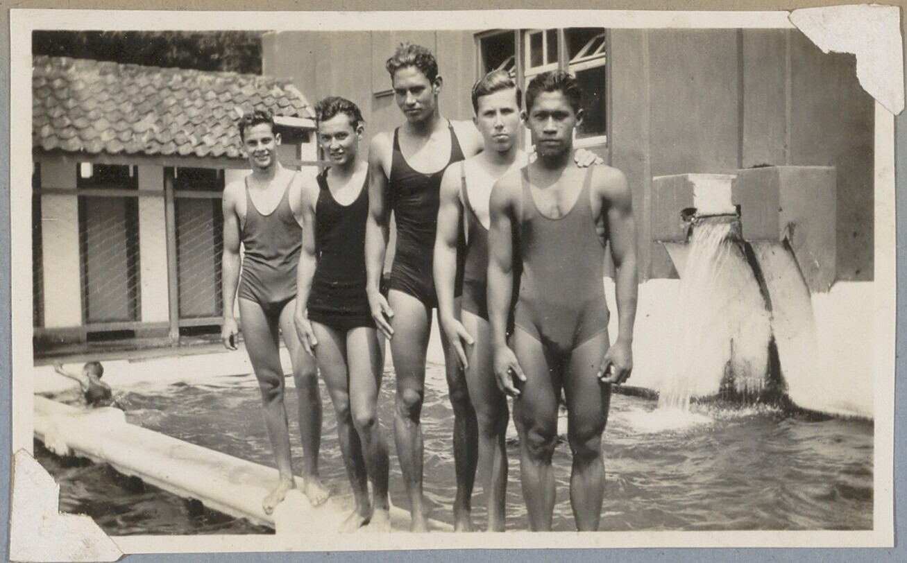 Zwemmers bij zwembad in Batavia