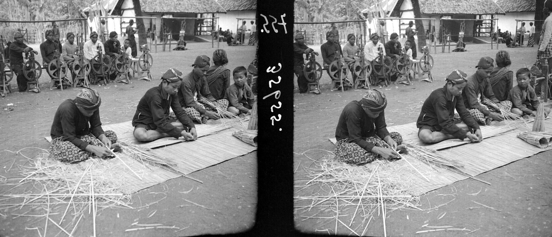 Inheemsche nijverheid te Nanggoelan. Java. Het vlech...