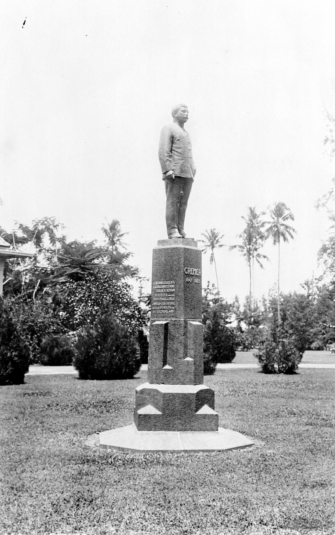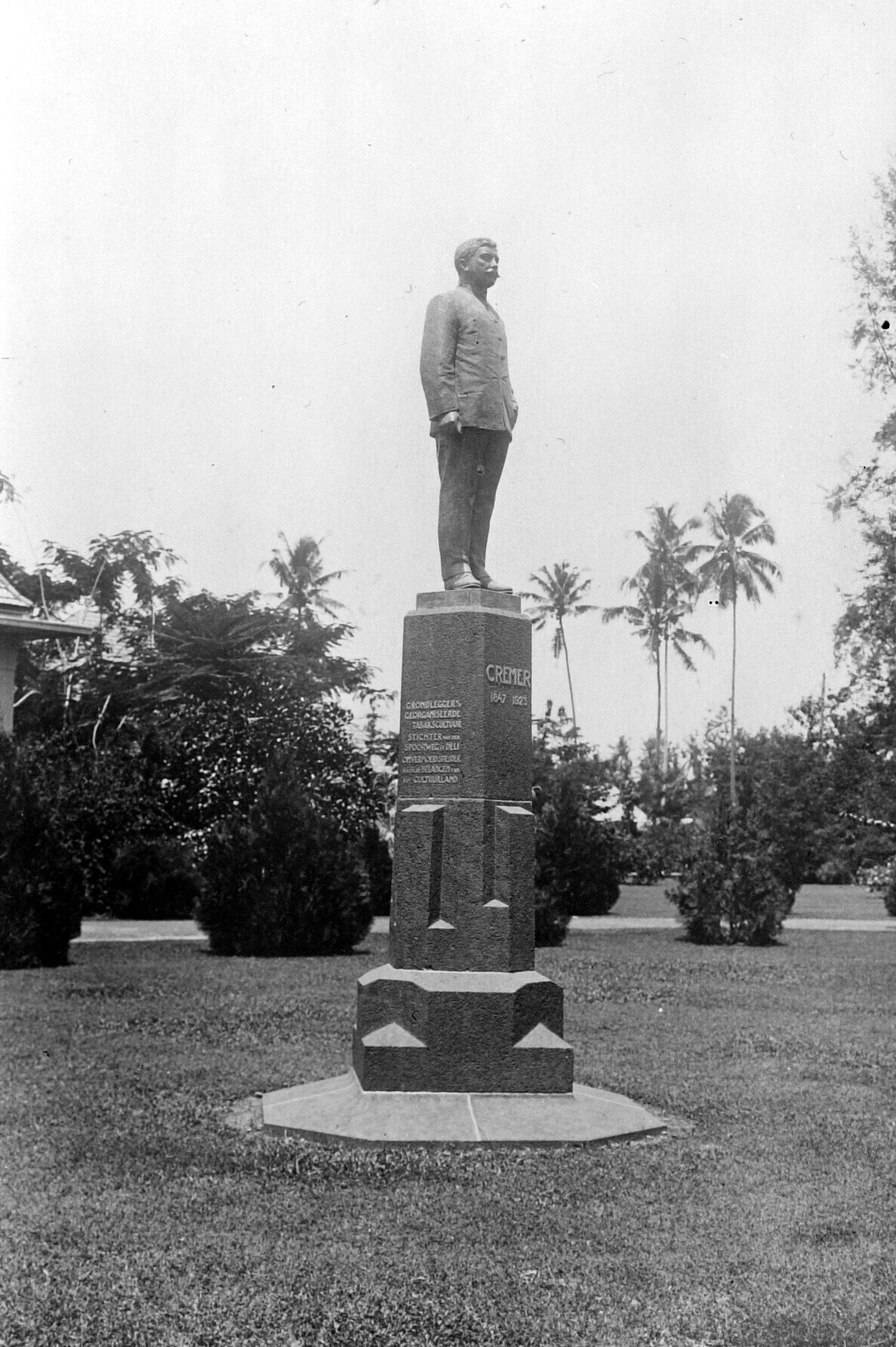 Het standbeeld van J.T. Cremer voor het kantoor van ...