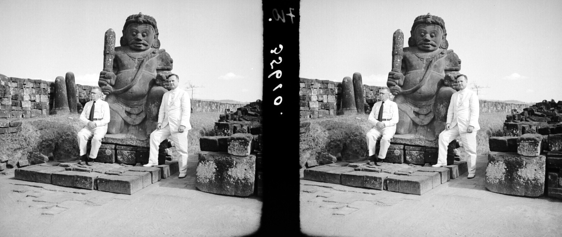 Stenen tempelwachter bij de Candi Sewu