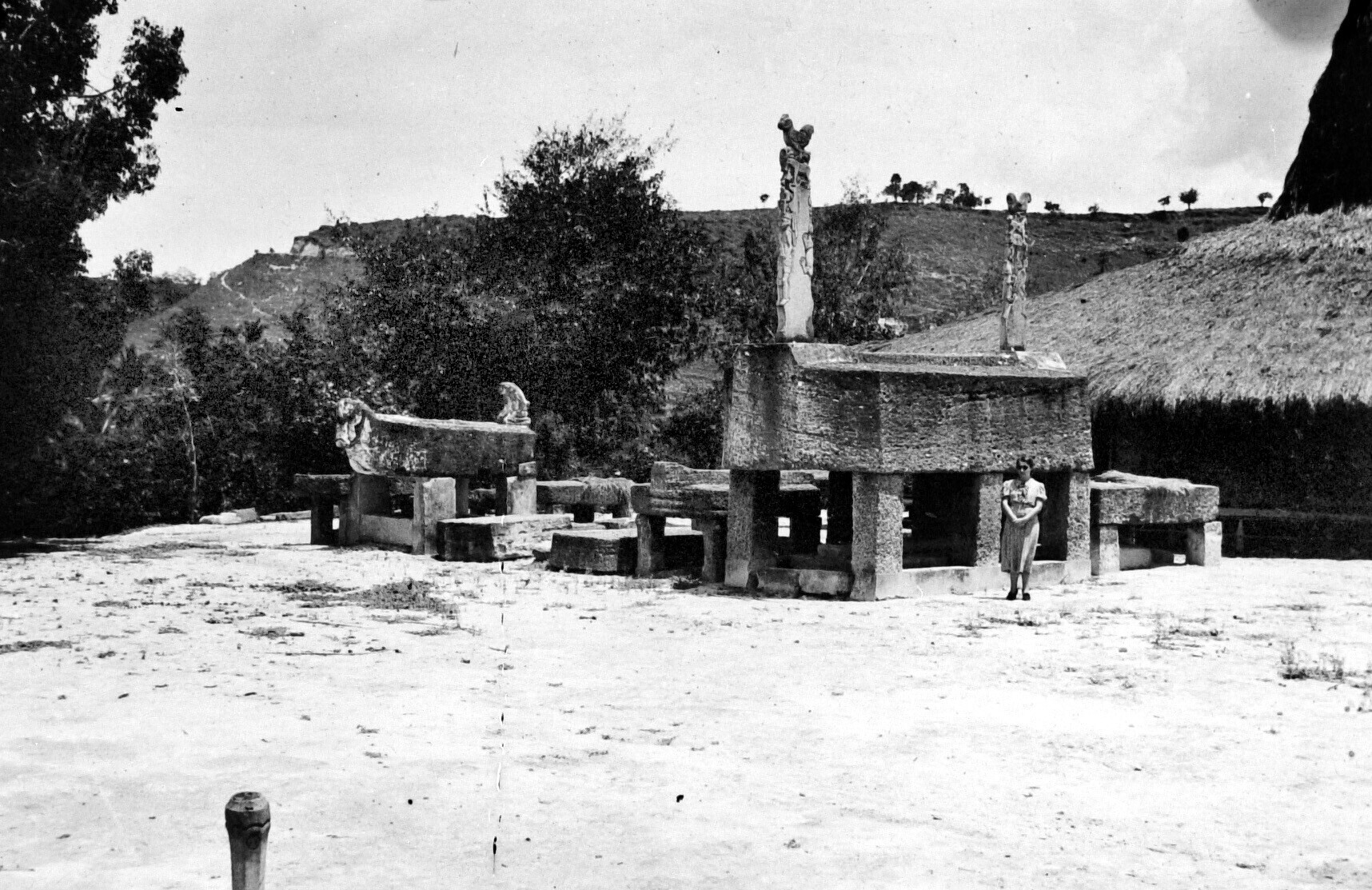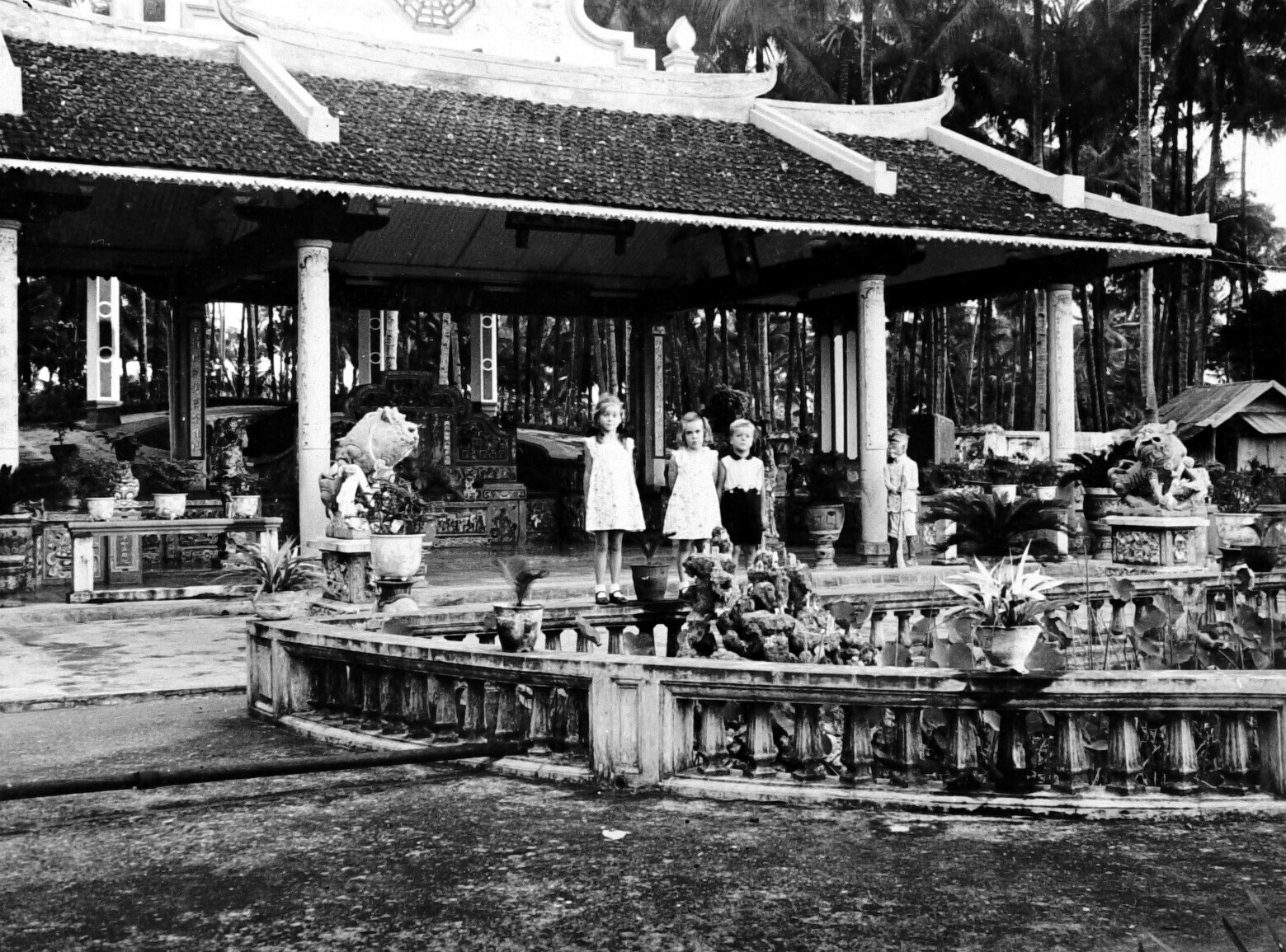 Children standing in front of a Chinese grave, Makassar